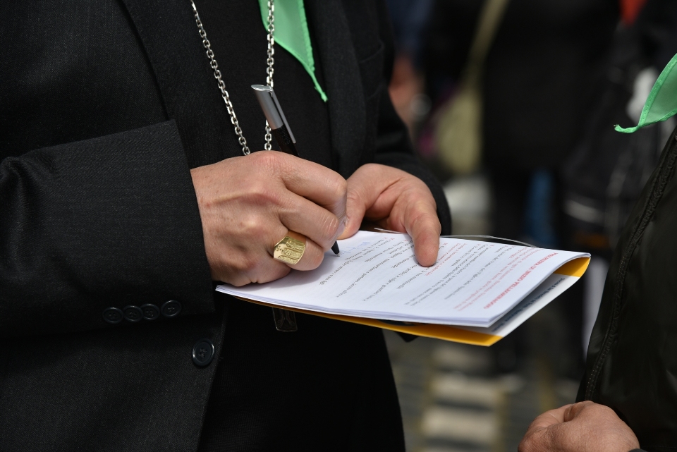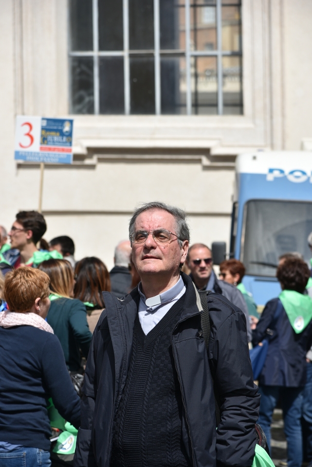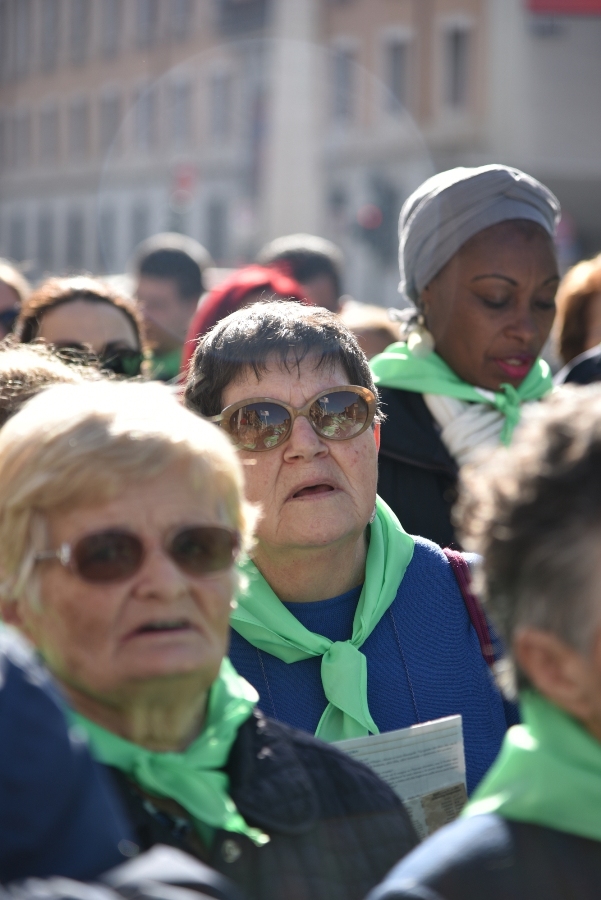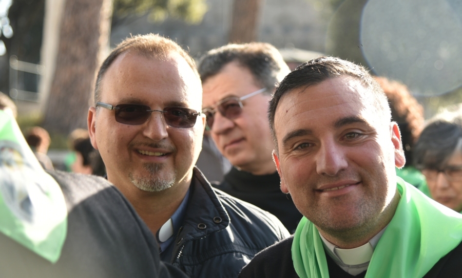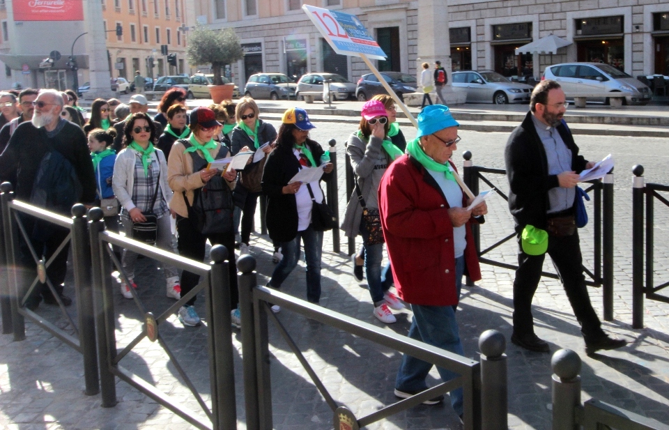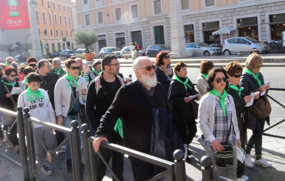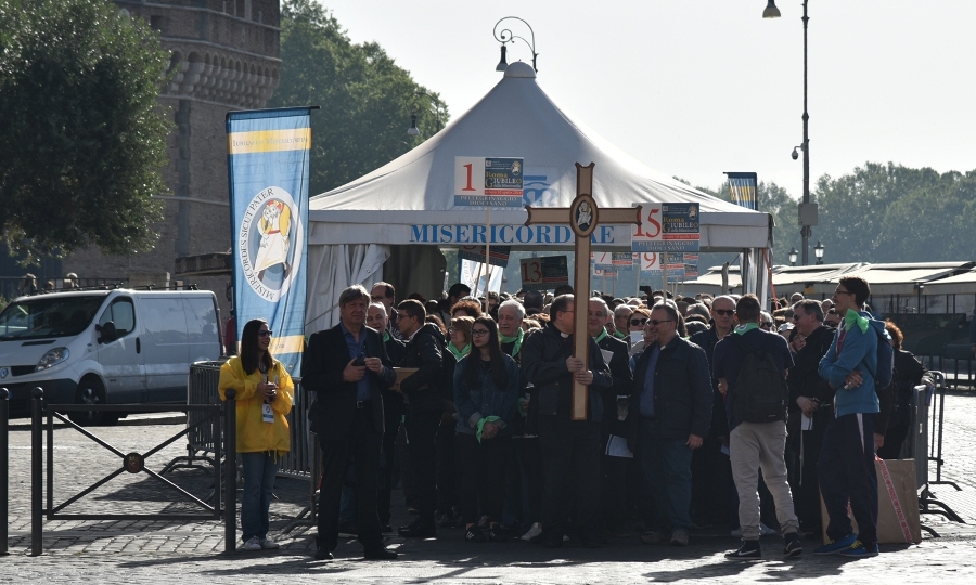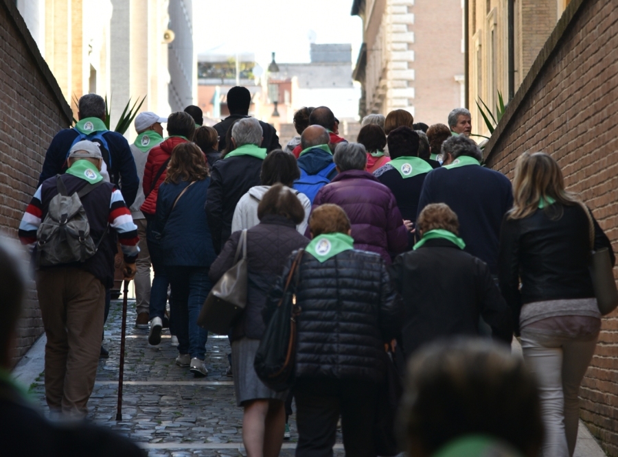 Il vasto gruppo si è ritrovato di buon mattino davanti a Castel Sant’Angelo per poi procedere lungo via della Conciliazione dentro un apposito percorso realizzato in occasione dell’ anno del Giubileo.