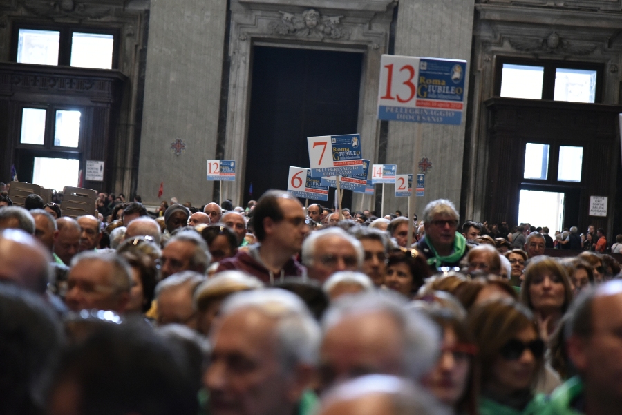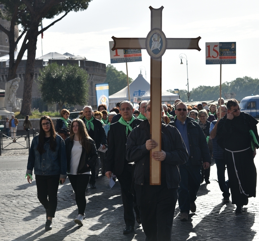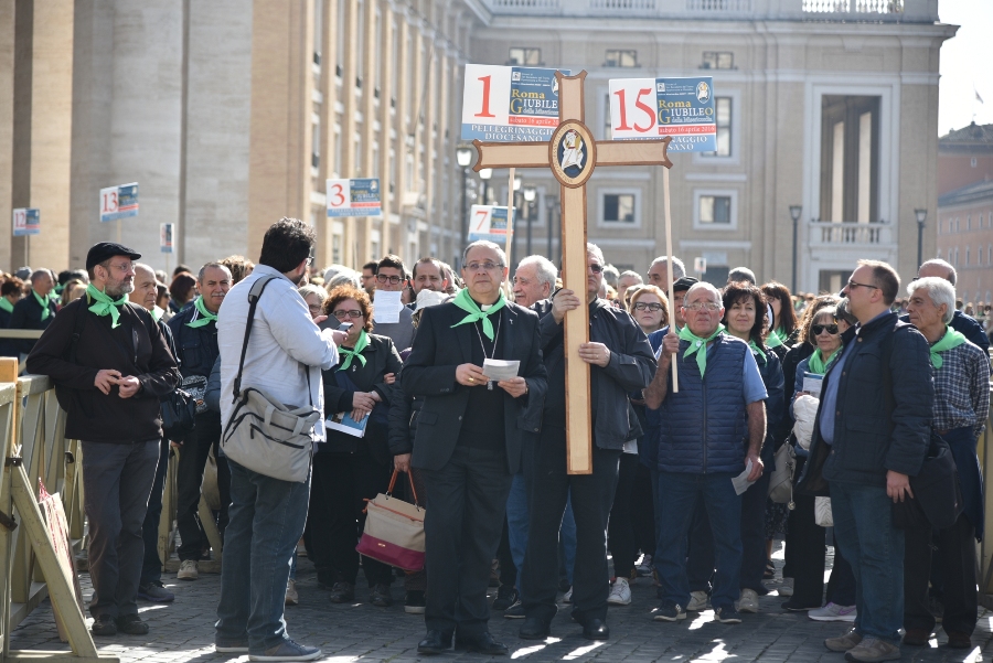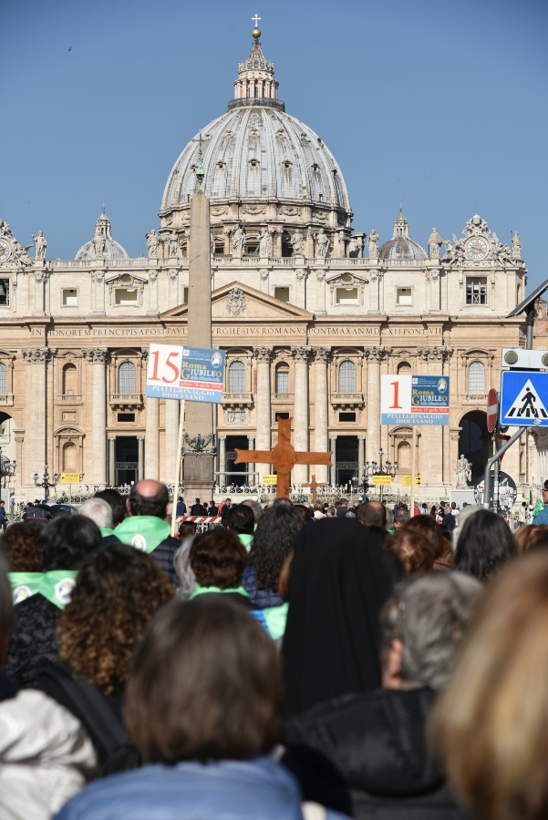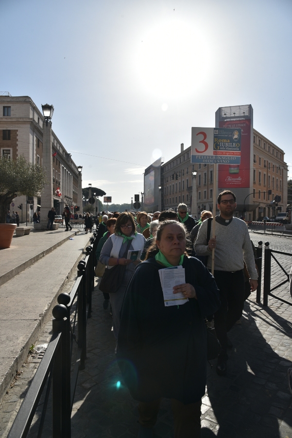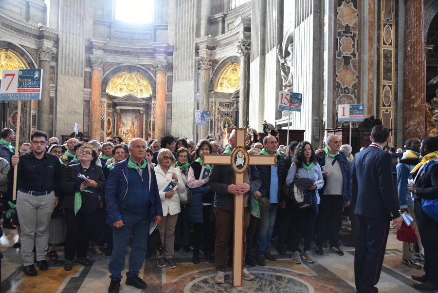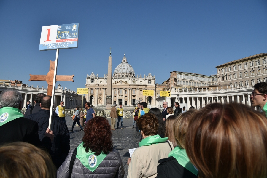 L’attesa dovuta al gran numero di pellegrini che affollavano la Basilica vaticana, non ha scoraggiato i partecipanti che, guidati dal Vescovo Carlo, dietro la Croce della Misericordia hanno raggiunto San Pietro.