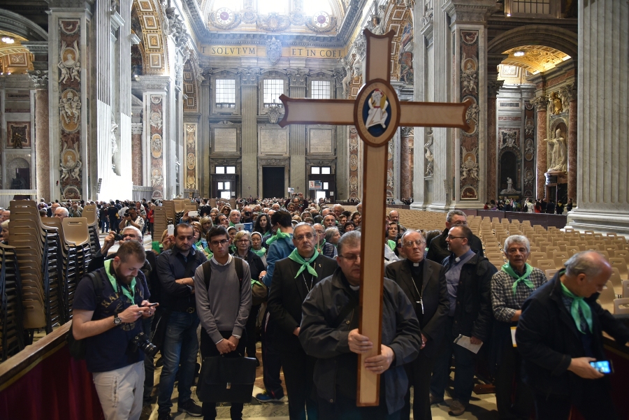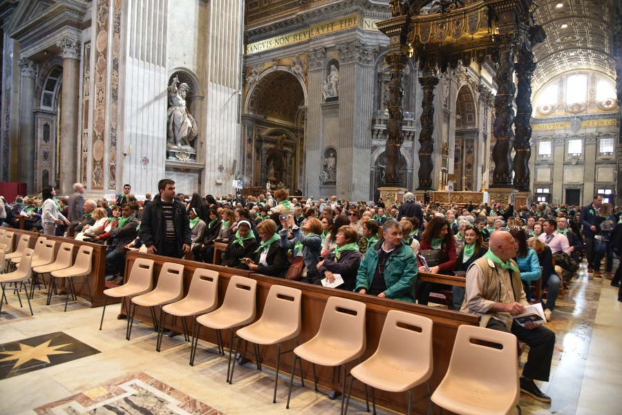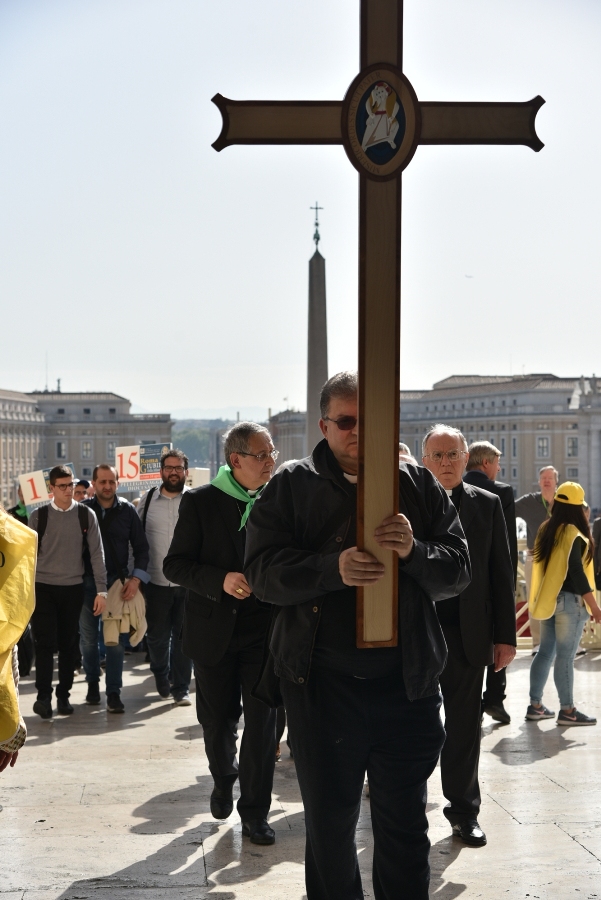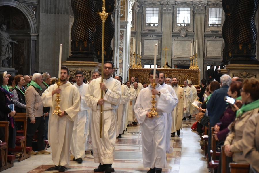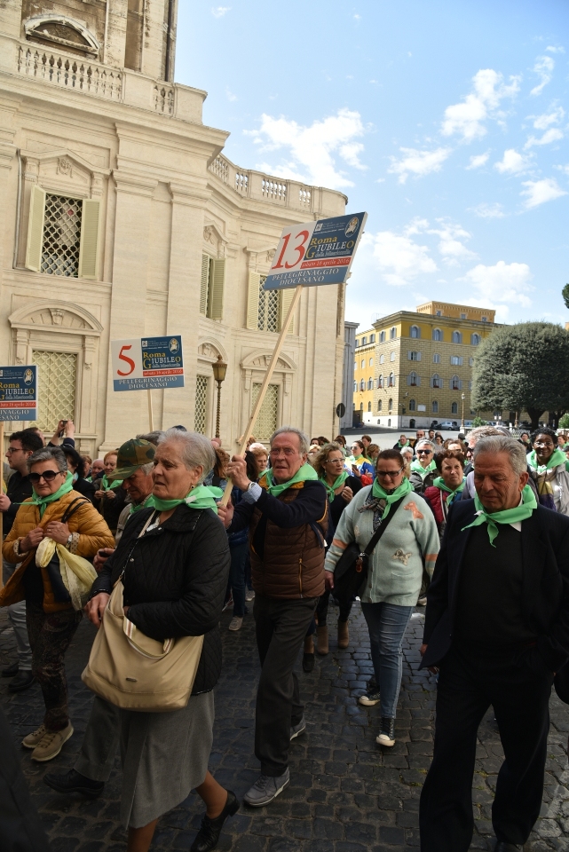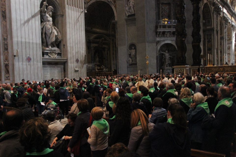 L’attesa dovuta al gran numero di pellegrini che affollavano la Basilica vaticana, non ha scoraggiato i partecipanti che, guidati dal Vescovo Carlo, dietro la Croce della Misericordia hanno raggiunto San Pietro.