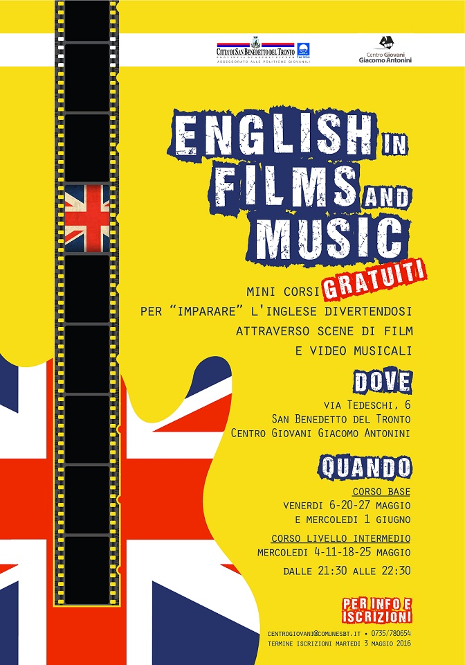SAN BENEDETTO DEL TRONTO – Dopo l’edizione di marzo, ritorna il corso di inglese “English in films and music”, tenuto dalla dott.ssa Simona Buonamici presso il CentroGiovani Giacomo Antonini.