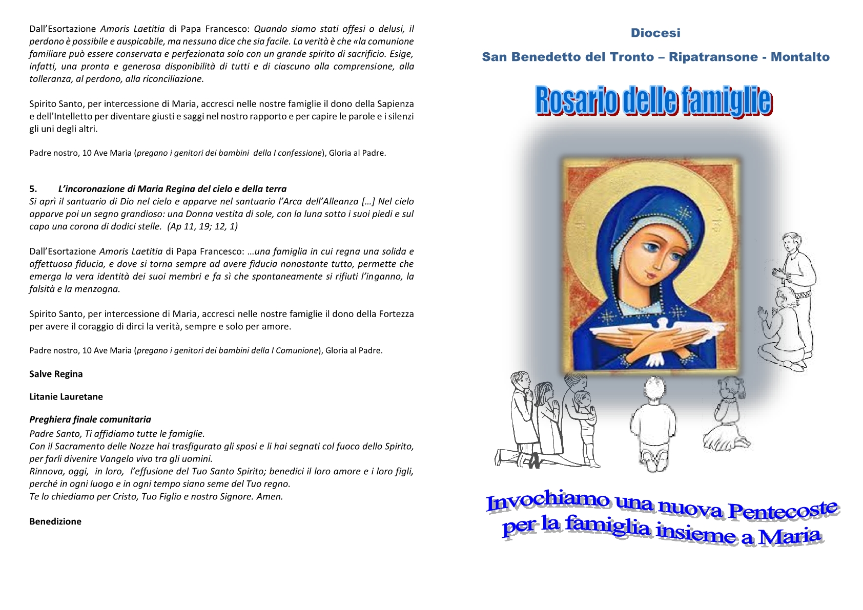 Pregando insieme il 13 maggio alle 21,15, per intercessione di Maria, è possibile ottenere una nuova Pentecoste per tutte le famiglie e per la nostra famiglia diocesana.