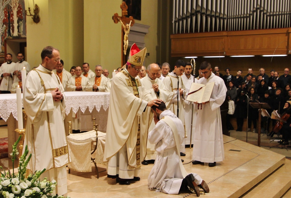 Tieni sempre salda quella fede che si appoggia fermamente sui dodici basamenti, che sono i 12 apostoli. Non sia turbato il tuo cuore, non abbia timore; non dire “sono giovane” (Ger 1,6), lo Spirito santo che il Padre ti manderà, ti insegnerà ogni cosa. Così ha promesso Gesù ai suoi apostoli e lo promette anche a te questa sera mentre ti affida il ministero di presbitero a servizio del suo corpo che è la Chiesa. Ricordati sempre che è un ministero di servizio e non di onore; un ministero di amore che si fa obbediente non alle proprie idee, ma alle parole di Gesù e della Chiesa.