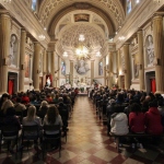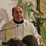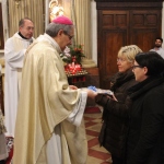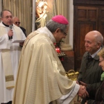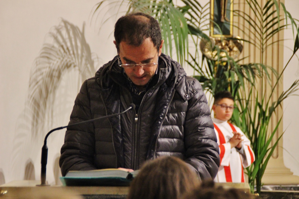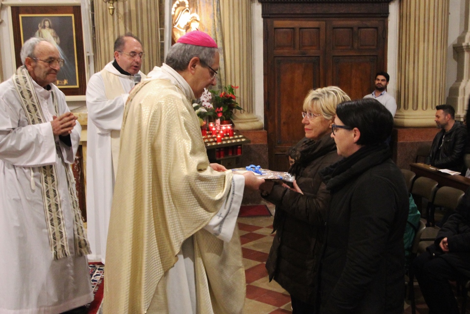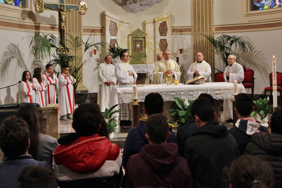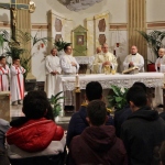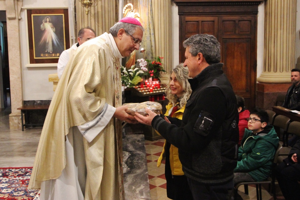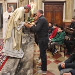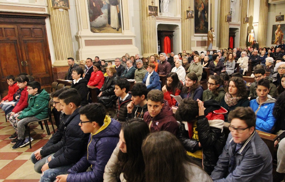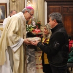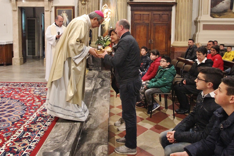 A concludere l’incontro il Vescovo Carlo, che ha sottolineato come la ricchezza del pianeta è sempre più gestita da poche persone perdendo di vista l’azione comunitaria e seguendo una direzione opposta rispetto all’azione cristiana e umana. Subito dopo, accompagnati da una pioggia battente, nella Chiesa di Santa Caterina si è celebrata la Santa Messa, presenti i ragazzi/e che nel mese di maggio faranno la prima Comunione e quelli/e che si apprestano al rito della Confermazione. I frutti della terra e del lavoro artigiano del territorio sono stati gli omaggi offerti al Vescovo molto graditi, dal rame ad alcuni libri di illustri Comunanzesi. Il parroco Don Dino Straccia alla fine della Celebrazione Eucaristica ha ringraziato il Vescovo a nome della comunità, dimostrando tutta la sua gratitudine per far sentire la Diocesi vicina alla comunità di Comunanza. Sua Eccellenza vistosamente emozionato ha ringraziato chiedendo in maniera molto simpatica di fargli trovare alla sua prossima visita una bella giornata di sole e non più “acqua”.