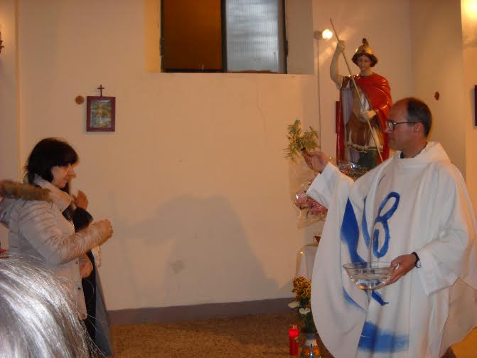 Il maltempo però non ha impedito che si celebrasse la Santa Messa in onore di san Giorgio a cui gli acquavivani sono molto devoti, erano presenti anche il sindaco Rosetti e il vice sindaco Balletta. All’inizio della Celebrazione Eucaristica il parroco don Alfredo ha benedetto l’acqua e vi ha immerso un ramoscello d’ulivo con cui ha poi asperso la comunità intervenuta. Durante l’omelia don Alfredo ha ricordato le parole del Papa Francesco, dove dice che il cristiano deve costruire per migliorare la società, per mantenere il bene comune. Non costruire per distruggere quello che gli altri hanno costruito. Ha proseguito parlando di san Giorgio e di come egli si sia prodigato per il bene di tutti e abbia con la sua esistenza dato esempio di virtù cristiana. Dopodiché il parroco ha ricordato che tutti, nessuno escluso, può essere di aiuto ad un altro, ognuno con il proprio lavoro o con la sola presenza che può trasformarsi in amicizia, può confortare e rallegrare la vita di chi è in difficoltà. Ha sottolineato come poi molti giovani, partecipando al Giubileo dei Ragazzi, hanno mostrato il volto giovane della Chiesa. Facendo poi riferimento al Vangelo della domenica dove Gesù dice agli Apostoli che manderà loro lo Spirito Santo che farà nuove le tutte cose , così i cristiani devono attualizzare il Messaggio del Vangelo nella società attuale.