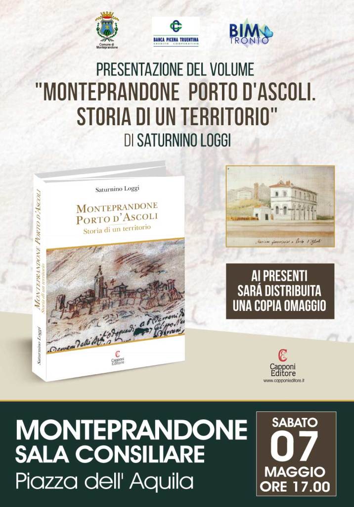 Una storia particolare, incentrata non solo nella figura di San Giacomo della Marca, nell’ultima fatica letteraria di Saturino Loggi, intitolata “Monteprandone Porto d’Ascoli, storia di un territorio“ che verrà presentata nella Sala Consiliare del municipio cittadino alle ore 17 di sabato 7 maggio. Un evento promosso dal Comune in collaborazione con Capponi Editore, la Banca Picena Truentina e il Bacino Imbrifero del Tronto.