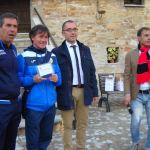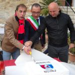 Dopo la partita, tutti sono stati invitati al ricco buffet organizzato ai piedi del Mastio in piazza del Forte. La piazza era piena di striscioni e bandiere in onore della Samb, canti da tifoseria e inno nazionale. Il vice sindaco Balletta ha ringraziato prima di tutto il sindaco che ha permesso tale festa e poi tutte le associazioni che hanno lavorato affinché tutto riuscisse al meglio: le due società calcistiche, Pro Loco, Terraviva, Palio del Duca, Gruppo della Carriola, le cantiche Cherri, Moncaro e Capecci che hanno offerto il vino, lo spumante Pepi Aliventi e Troli Cristano, il ristorante “1941” che ha offerto la pizza, il forno Camela che ha anch’egli offerto la pizza, il forno Massicci-Vulpiani che ha offerto i dolci e preparato e offerto la torta con lo stemma della Samb. Un grazie anche ai due ex giocatori della Samb: Sebastiano Vecchiola e Troli Cristano. Ha ringraziato anche i mister: della Samb Ottavio Palladini e dell’Acquaviva calcio seconda categoria Luigi Travaglini. Poi la parola è passata al sindaco Rosetti che ha detto: “Ho notato che i bambini vi guardavano mentre eravate in campo e che erano più attenti di noi adulti. Cercate sempre di essere un buon esempio di virtù e lealtà per loro, ricordandovi che lo sport unisce e non divide, và oltre ogni barriera”. Dopodiché anche l’assessore Rossi ha salutato e ringraziato tutti i presenti. Non è mancato il taglio della torta con su lo stemma della Samb e il brindisi con lo spumante. Il vice sindaco ha poi voluto premiare con una bottiglia di vino, consegnata dalle ragazze di Acquaviva Alessia, Erika e Giulia, tutti i calciatori delle due squadre e i presidenti delle associazioni. Con una targa, invece, ha premiato gli allenatori e i presidenti.