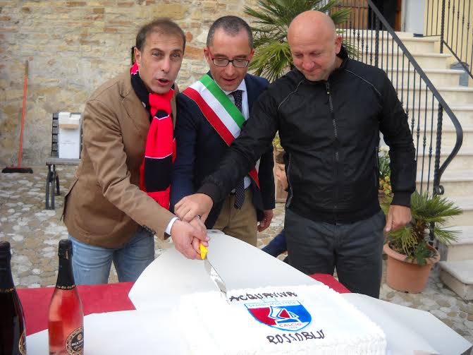 Dopo la partita, tutti sono stati invitati al ricco buffet organizzato ai piedi del Mastio in piazza del Forte. La piazza era piena di striscioni e bandiere in onore della Samb, canti da tifoseria e inno nazionale. Il vice sindaco Balletta ha ringraziato prima di tutto il sindaco che ha permesso tale festa e poi tutte le associazioni che hanno lavorato affinché tutto riuscisse al meglio: le due società calcistiche, Pro Loco, Terraviva, Palio del Duca, Gruppo della Carriola, le cantiche Cherri, Moncaro e Capecci che hanno offerto il vino, lo spumante Pepi Aliventi e Troli Cristano, il ristorante “1941” che ha offerto la pizza, il forno Camela che ha anch’egli offerto la pizza, il forno Massicci-Vulpiani che ha offerto i dolci e preparato e offerto la torta con lo stemma della Samb. Un grazie anche ai due ex giocatori della Samb: Sebastiano Vecchiola e Troli Cristano. Ha ringraziato anche i mister: della Samb Ottavio Palladini e dell’Acquaviva calcio seconda categoria Luigi Travaglini. Poi la parola è passata al sindaco Rosetti che ha detto: “Ho notato che i bambini vi guardavano mentre eravate in campo e che erano più attenti di noi adulti. Cercate sempre di essere un buon esempio di virtù e lealtà per loro, ricordandovi che lo sport unisce e non divide, và oltre ogni barriera”. Dopodiché anche l’assessore Rossi ha salutato e ringraziato tutti i presenti. Non è mancato il taglio della torta con su lo stemma della Samb e il brindisi con lo spumante. Il vice sindaco ha poi voluto premiare con una bottiglia di vino, consegnata dalle ragazze di Acquaviva Alessia, Erika e Giulia, tutti i calciatori delle due squadre e i presidenti delle associazioni. Con una targa, invece, ha premiato gli allenatori e i presidenti.