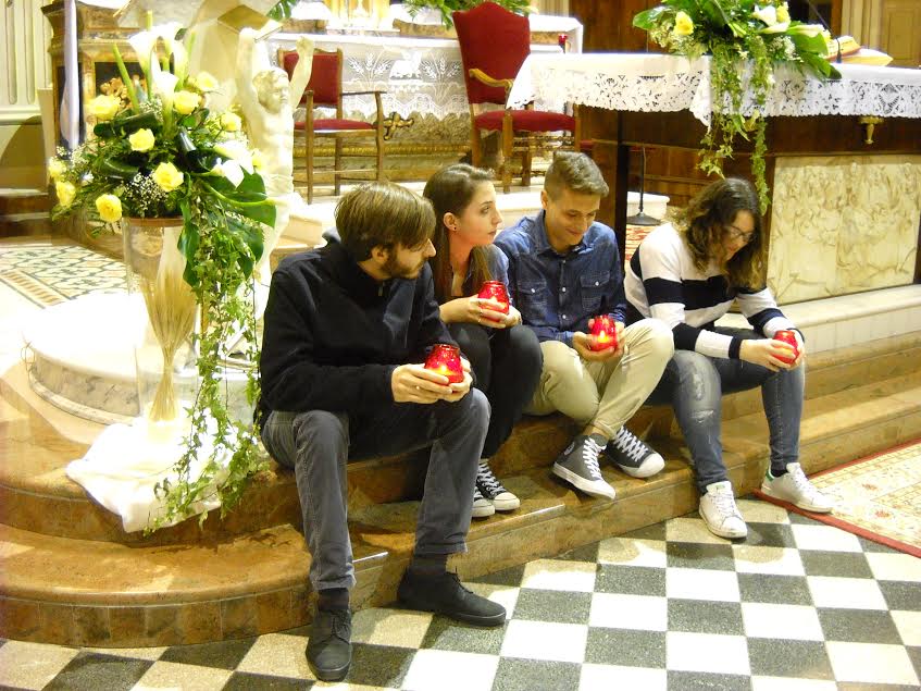 Subito dopo il suono della campanella mentre i sacerdoti e i ministri si dirigevano verso il presbiterio, quattro giovani della parrocchia si sono seduti ai piedi dell’ambone con in mano una candela accesa ciascuno. La candela simboleggiava la Parola del Signore che è “Luce sul cammino degli uomini”.
