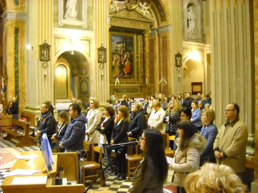 Nell’omelia padre Orazio si è soffermato principalmente sulle due opere di misericordia spirituali che erano il tema del terzo venerdì di Misericordia come stabilito da don Alfredo insieme al consiglio pastorale parrocchiale e degli affari economici. Le due opere meditate sono state: consigliare i dubbiosi e insegnare agli ignoranti. Padre Orazio ha sottolineato che: “ Per poter consigliare e insegnare bene agli altri dobbiamo prima noi stessi entrare in relazione con Dio e farci consigliare e insegnare. Alle nostre domande troviamo risposta nelle Sacre Scritture. La Bibbia ci permette di avere il giusto sguardo delle cose. La Parola deve essere sempre presente nella nostra vita, così che possa operare piano piano dentro di noi. Gli uomini hanno tanti consigli umani e terreni, ciò che manca loro è la via giusta da seguire, la Via di Gesù che è poi quella che dà la gioia più grande, quella che non tramonta mai. Solo nel Signore noi siamo in pace con noi stessi e con gli altri. Solo così siamo capaci di accettare tante cose che non ci piacciono e solo con l’aiuto dello Spirito Santo che ci dona il Consiglio e l’ Intelletto, siamo in grado di spiegarci i motivi di tante sofferenze. Ognuno di noi ha la propria strada da fare e ha bisogno dei consigli del Signore per poterla attraversare senza smarrirsi. Lui sa di cosa abbiamo bisogno già nel momento in cui il desiderio si forma nel nostro cuore, prima ancora che noi glieLo rivolgiamo sotto forma di preghiera. Dio vuole da noi solo la piena fiducia, vuole che ci lasciamo plasmare come un vaso dal vasaio. Lui conosce tutti i nostri tormenti. Le difficoltà e le incertezze sono tante, ma queste non possono ostacolare la Provvidenza del Signore sulle Sue creature. Egli chiede a noi la massima fiducia”. “Un buon cristiano” ha proseguito padre Orazio, “ è un uomo giusto, cioè colui che vede le cose per quelle che sono e non ha paura di dire le cose per come stanno anche se ciò che dirà o farà non sarà ben visto. Si è cristiani sempre e ovunque, non solo quando si prega o quando si và a Messa. Il cristiano è poi colui che mette a disposizione degli altri i proprio doni. Il Signore dona, a ciascuno di noi, dei particolari carismi e la Sua intenzione è quella di chiederci di metterli a disposizione degli altri. Noi riceviamo i doni e successivamente li ridoniamo agli altri. Quindi consigliare chi è nel dubbio e insegnare a chi non sa, diventa mettere a disposizione degli altri le nostre conoscenze, mettere a disposizione degli altri le stesse risposte che il Signore ci ha donato prima a noi, quando anche noi eravamo nell’incertezza”.