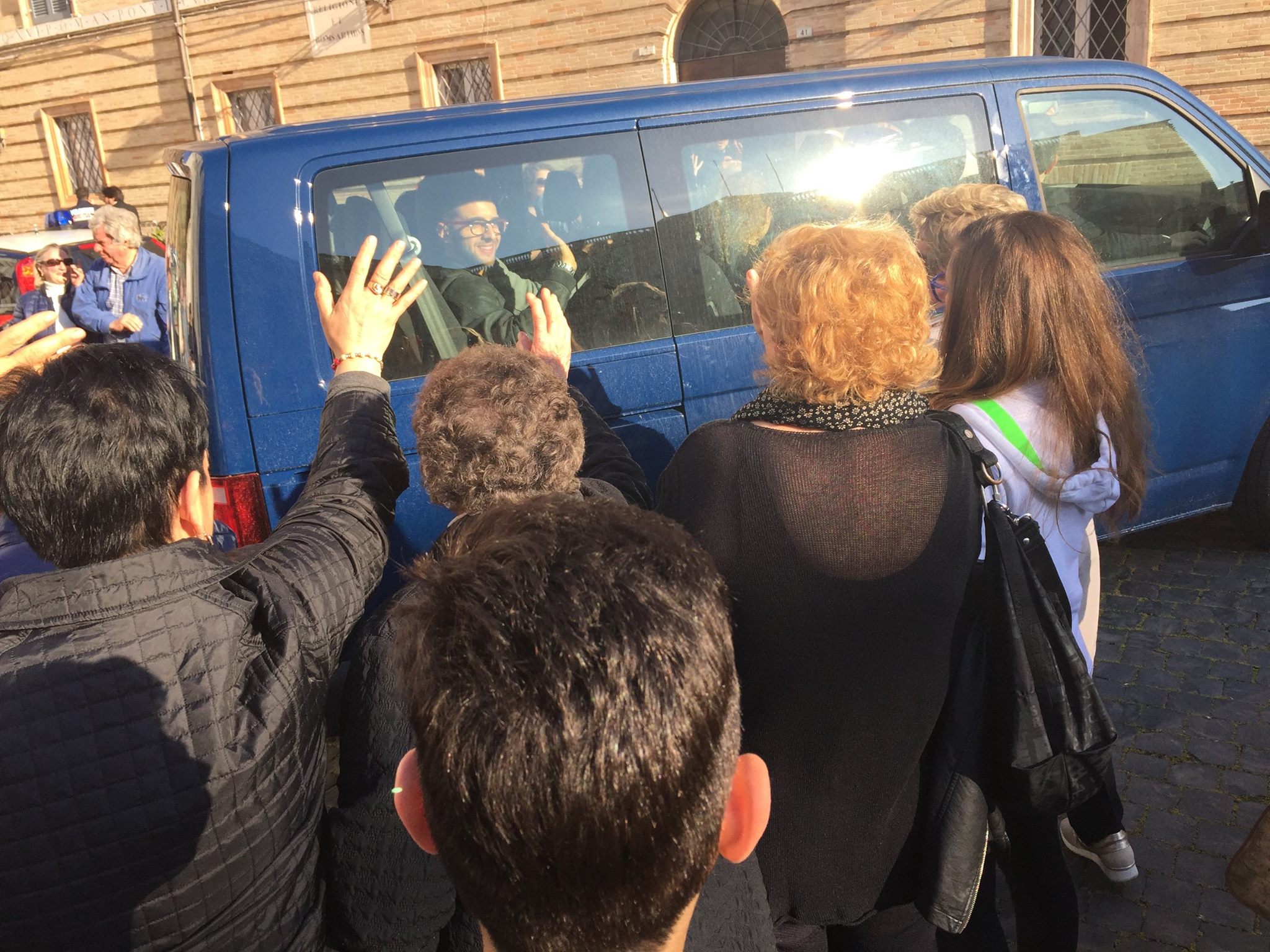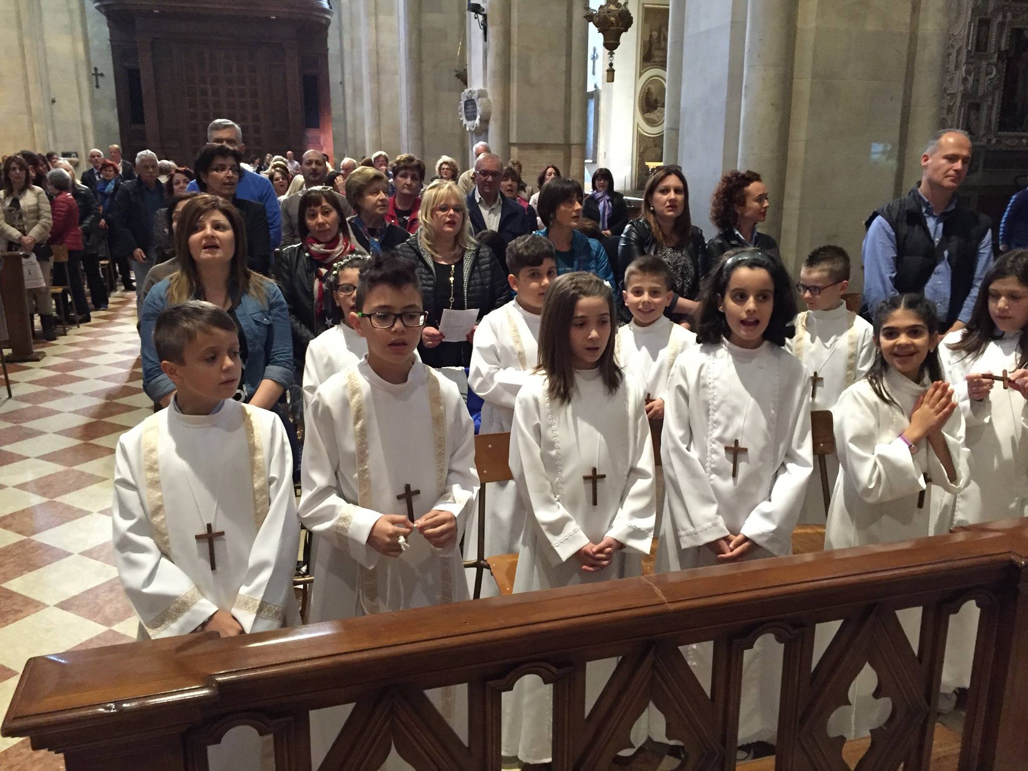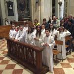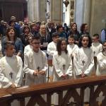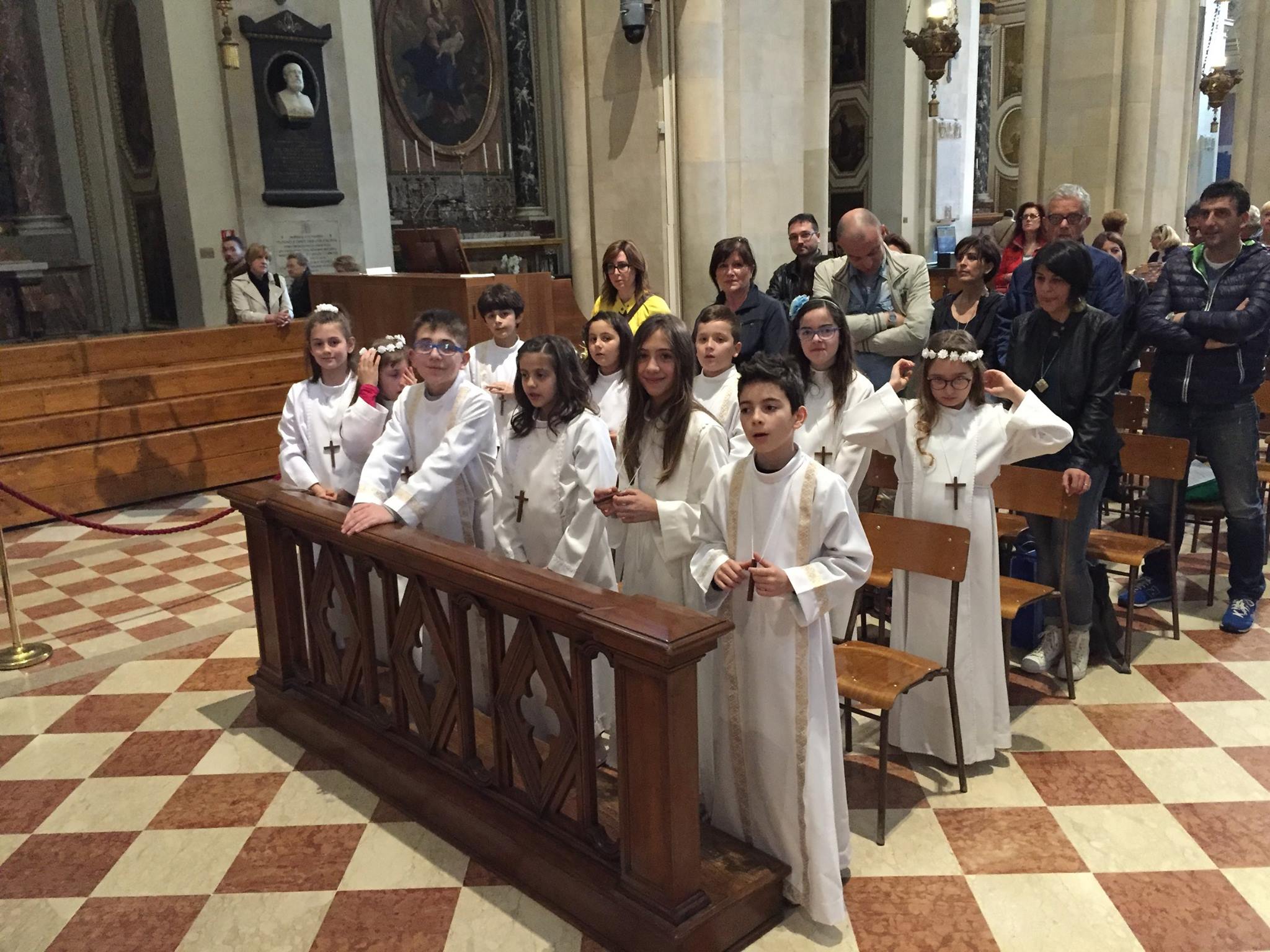 La testimonianza di una mamma: “Insieme al nostro Parroco don Francesco, abbiamo compiuto il percorso giubilare attraversando la Porta Santa e le diverse cappelline della Basilica della Santa Casa. Abbiamo celebrato la S. Messa con grande emozione dei bambini, che con le tonache bianche, si sono accostati all’Eucarestia per la 2° volta. Al termine della celebrazione, tra lo stupore di tutti, siamo stati raggiunti da un gruppo di atleti con una fiaccola in mano con telecamere, ed i 3 de “Il Volo” con guardie del corpo al seguito. Piero Barone si è fermato davanti a mia figlia e, chiedendole come si chiamasse, le ha chiesto un bacio. Marta, non se lo è fatto ripetere due volte e, suscitando l’invidia delle nonne presenti, è stata teneramente accarezzata e baciata sulla guancia dal tenore. A quel punto, i divi si sono sistemati ai lati dell’altare per la preghiera personale e la cerimonia dell’accensione della fiaccola. Non è stato facile lasciare quel santo luogo, tutti si attendevano che i tenorini cantassero l’Ave Maria alla Madonna di Loreto. E’ stata veramente una graditissima sorpresa, e certamente anche la seconda Comunione vissuta a Loreto sarà ricordata con grande emozione quanto la prima.”