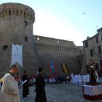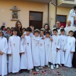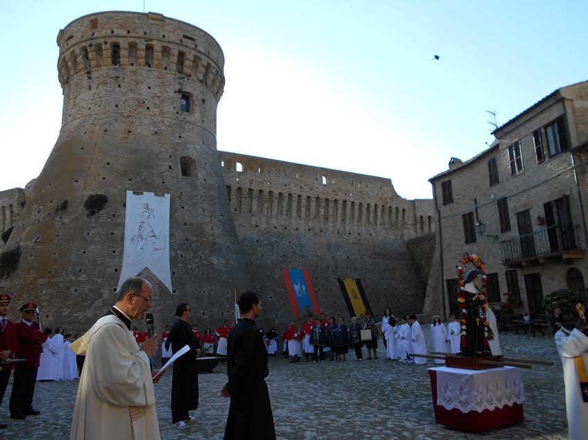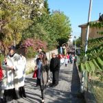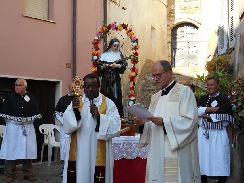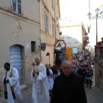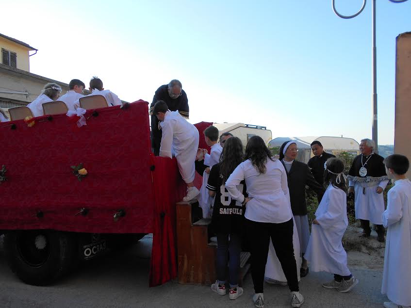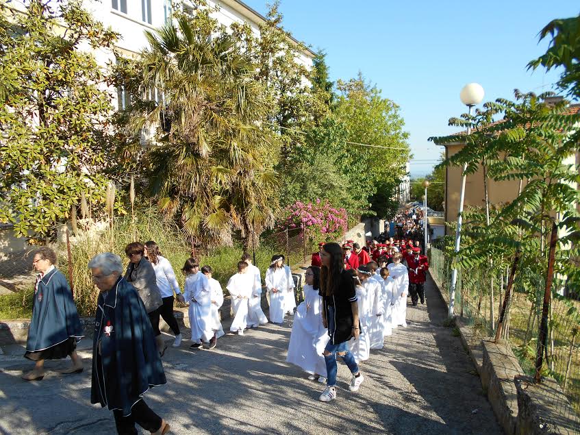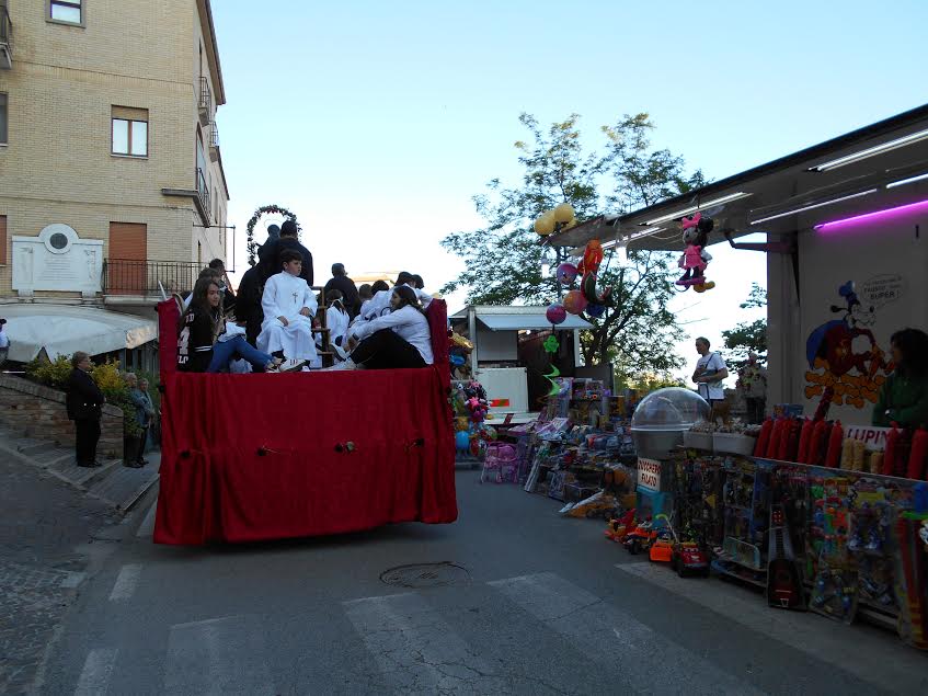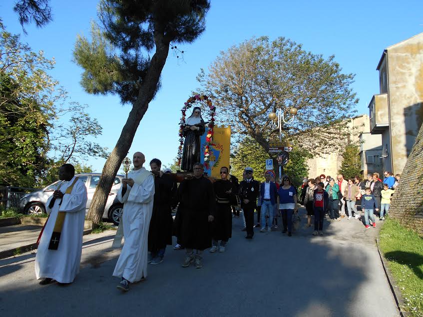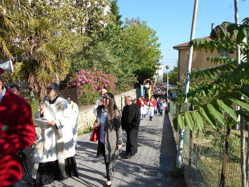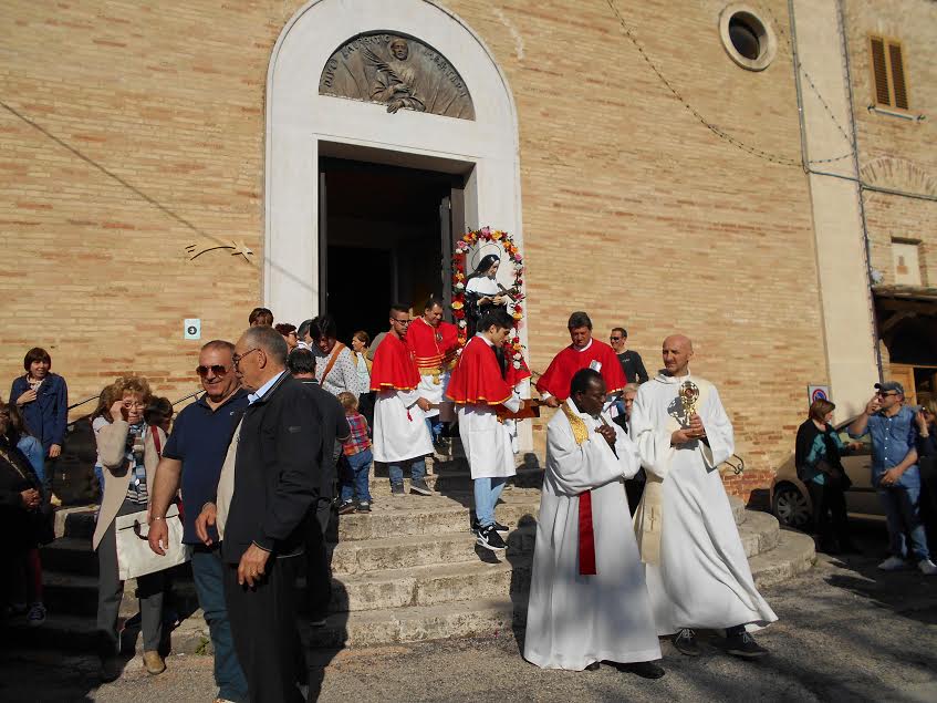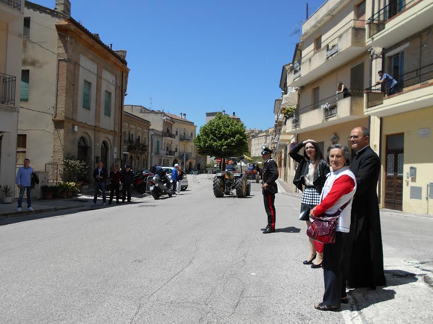 ACQUAVIVA PICENA – Ad Acquaviva Picena si sono conclusi i festeggiamenti per santa Rita da Cascia, tra triduo, giochi per bambini, gare di briscola, concerti, stand gastronomici, bancarelle e altro ancora. Domenica 22 maggio al termine della santa Messa delle 10:00 il priore, nonché padre provinciale, padre Luigi ha consegnato una rosa a tutte coloro che portano il nome di “Rita”. A tutte le Messe sono state benedette le rose che poi sono state portate a casa da tutti i fedeli presenti. Alle 10:30 circa un corteo di trattori, d’epoca e moderni, ha attraversato la strada principale di Acquaviva dove padre Emil li attendeva per la benedizione e consegnare loro il santino di santa Rita.Verso le 18:00 si è snodata la solenne processione, con la statua della Santa, lungo le vie del centro storico. Durante la processione sono state lette preghiere di santa Rita e dei brani estrapolati da “Amoris Laetitia” di Papa Francesco ed eseguito canti. Presente anche la banda musicale.