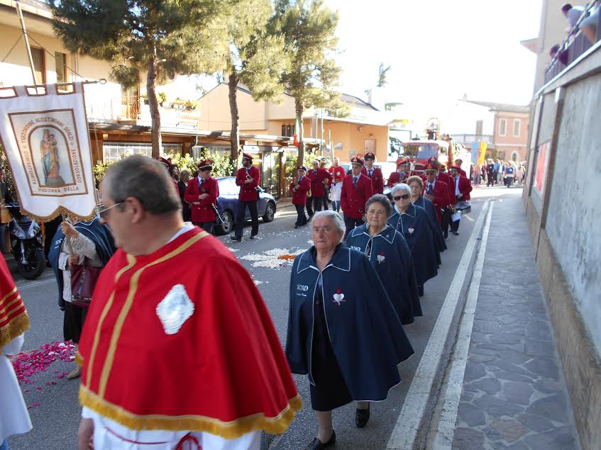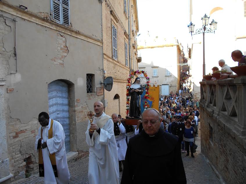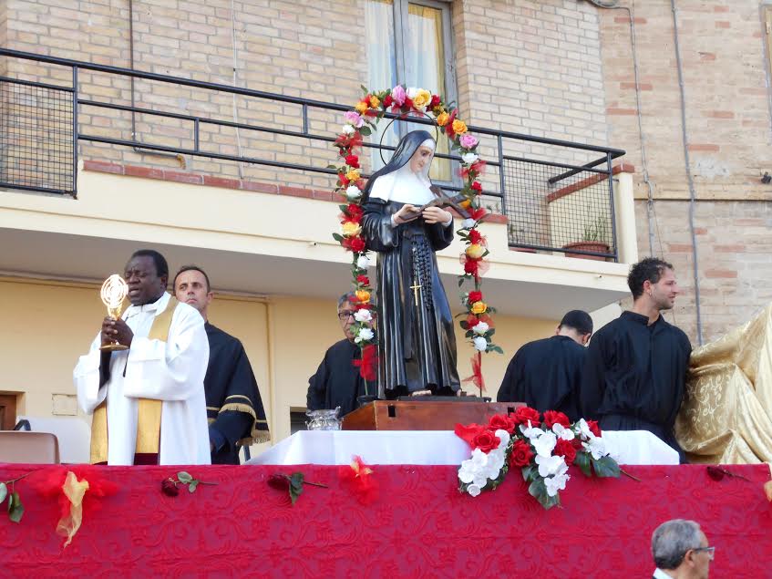 Alla solenne processione hanno partecipato tutte le confraternite, i frati agostiniani di Acquaviva, il diacono Giovanni, il sindaco Rosetti con tutta l’amm.ne comunale, il maresciallo Petruzzi, il presidente CO.RE.COM. Colonnella e i vigili urbani. Presenti hanno moltissimi fedeli e devoti di santa Rita. Presenti anche i bambini della Prima Comunione con le educatrici Arianna e Alessia, che da un certo punto in poi della processione sono saliti sullo storico carro di santa Rita, storico perché è lo stesso carro che viene usato per la processione dagli anni 60. Le strade sono state riempite di petali di rose gettati a terra dalle signore del paese al passaggio della statua. Terminata la processione c’è stata la benedizione degli automezzi e verso le 21:00 il concerto del gruppo “DIANA band”. Verso le 22:30 circa un numerosissimo pubblico ha assistito al concerto dei “Cugini di Campagna”. I fuochi pirotecnici hanno illuminato il cielo di Acquaviva verso le 00:00.