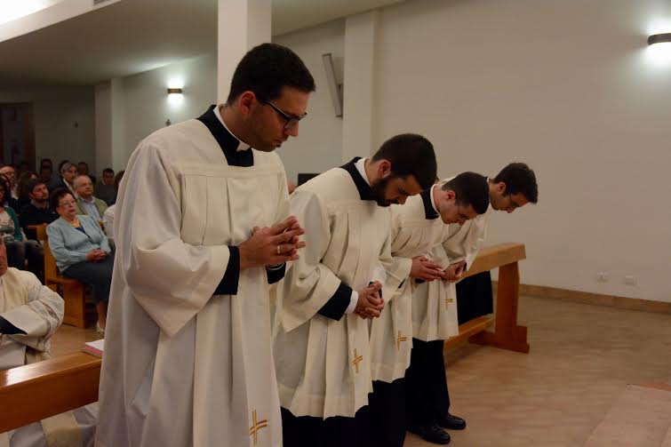 In seminario è festa e alle 19.00 comincia la celebrazione eucaristica. A presiedere è il Vescovo di Jesi, monsignor Gerardo Rocconi. La liturgia è semplice, ben animata. Dopo la proclamazione delle letture e del Vangelo, avviene la presentazione dei cinque candidati: quattro lettori e un accolito. Nell’omelia il Vescovo si sofferma su alcune parole tratte dalla prima lettera di San Pietro apostolo e sull’importanza per il prete di saper essere in comunione con i propri confratelli. Poi è il momento dell’istituzione del nostro lettore: il Vescovo gli consegna la Bibbia dicendo: «Ricevi il libro delle sante Scritture e trasmetti fedelmente la parola di Dio, perché germogli e fruttifichi nel cuore degli uomini».
