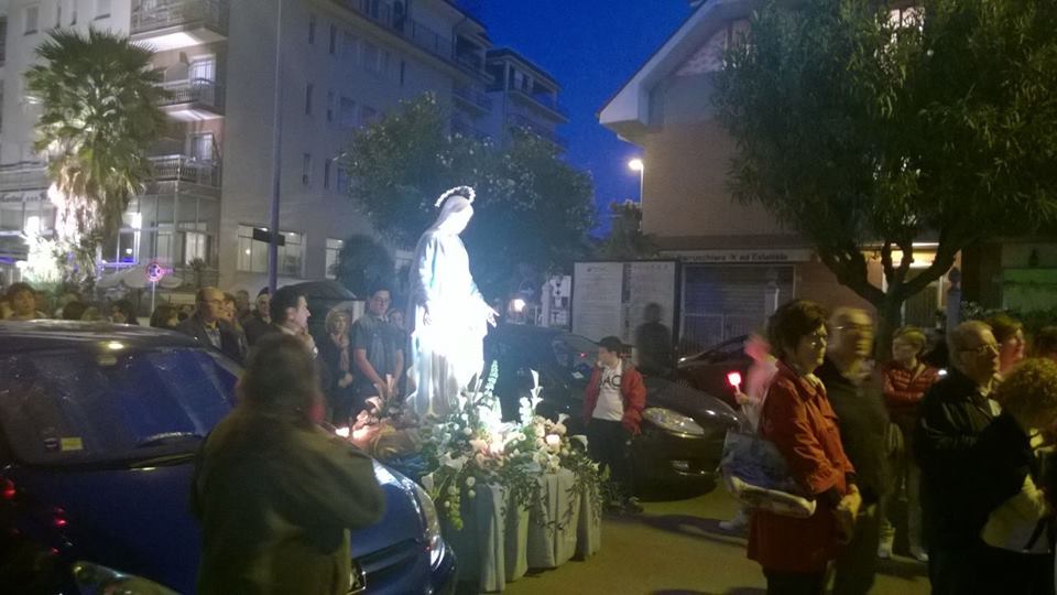 SAN BENEDETTO DEL TRONTO – La comunità di Ragnola si appresta a chiudere il mese di maggio tradizionalmente dedicato a Maria Santissima e alla preghiera del Rosario. Numerose sono state le iniziative, con momenti di preghiera nella chiesa parrocchiale, dove ogni Rosario o ogni mistero è stato dedicato ad un’intenzione particolare. Questa sera, martedì 31 maggio la parrocchia Sacra Famiglia organizza la processione con recita del Rosario meditato in chiusura del mese di maggio. Ritrovo e partenza alle 21 davanti alle case in via Zandonai. Arrivo intorno alle 21.30 al presso la chiesetta in Via dei Mille, dove sarà celebrata la S. Messa.