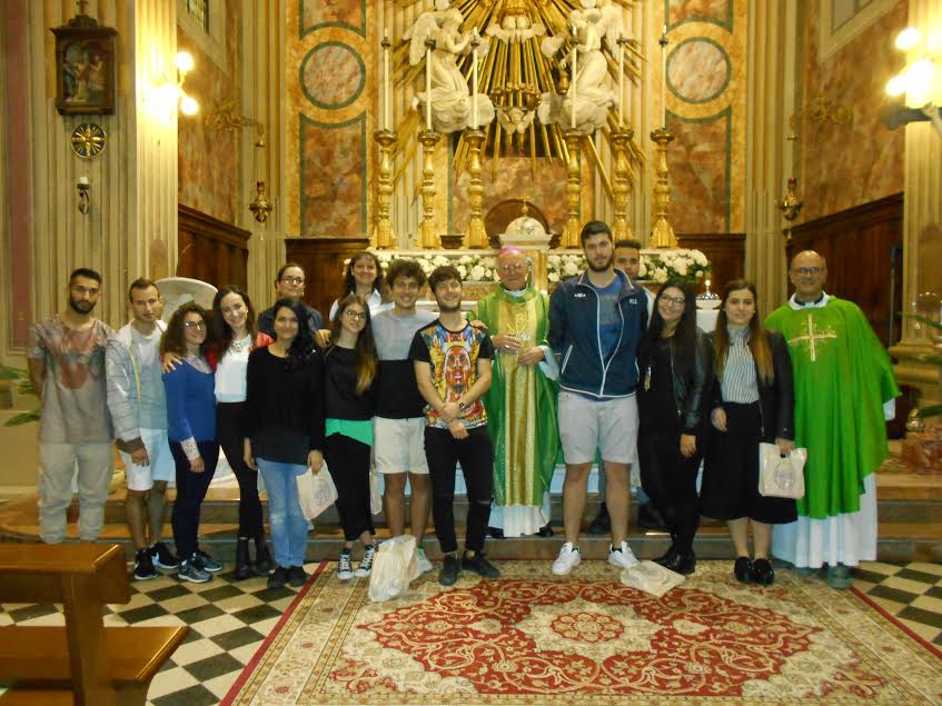 ACQUAVIVA PICENA – I maturandi di Acquaviva Picena si sono ritrovati domenica 12 giugno nella chiesa di san Niccolò per partecipare alla santa Messa delle 19:00, dopodiché la serata è proseguita alla casa del catechismo per una pizza insieme. La santa Messa è stata presieduta da Sua Eccellenza Mons. Gestori vescovo emerito e concelebrata da don Alfredo. Il vescovo Gestori si è soffermato sul Vangelo di domenica e rivolgendosi in particolar modo ai ragazzi ha detto loro di essere grati al Signore per tutto ciò che ogni giorno Egli dona a tutti noi, grati così come lo è stata la peccatrice descritta nel brano del Vangelo. Ella ha capito il messaggio di salvezza del Signore a differenza del fariseo che aveva il cuore ancora chiuso. Sua Eccellenza ha poi augurato ai ragazzi una buona riuscita negli esami e pregato insieme san Giuseppe da Copertino patrono degli studenti. Il parroco don Alfredo ha regalato, invece, ai ragazzi un dono “profumato”, rifacendosi anch’egli al Vangelo della domenica. Li ha incoraggiati ad essere profumo della terra e a lasciare un buon segno ovunque arrivassero.