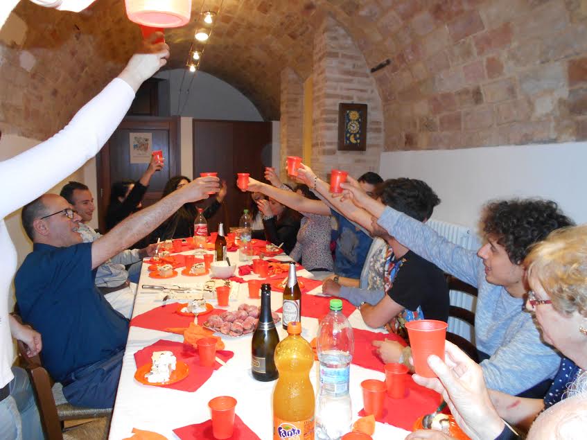 Alla cena hanno partecipato i ragazzi insieme al parroco don Alfredo, al vescovo Gervasio e alle educatrici che li hanno accompagnati alcuni anni fa nel cammino verso la Cresima Janet e Patrizia. Dopo il brindisi ben augurale in vista degli esami, i ragazzi si sono sentiti di rivolgere tanti ringraziamenti alla signora Flora che ha preparato tutta la cena.