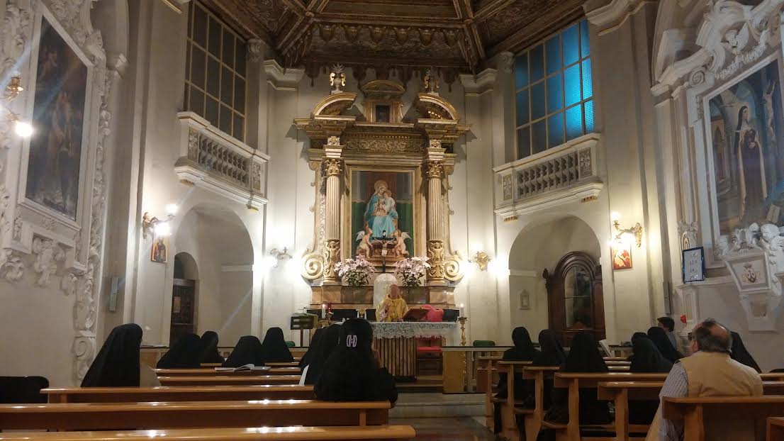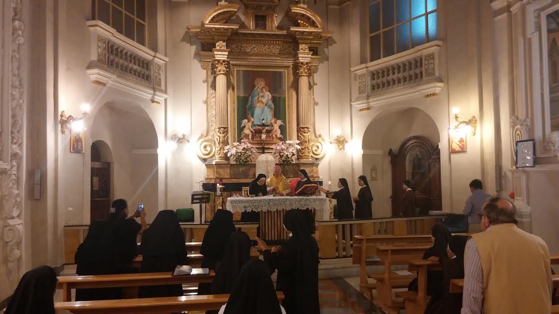 Nella cappella del loro Istituto, cioè l’antica chiesa di San Pastore, in mattinata si è svolta una celebrazione eucaristica presieduta dal Vescovo Emerito Gervasio Gestori, essendo Mons. Carlo Bresciani impegnato a vivere gli esercizi spirituali con il clero diocesano a Montemonaco.