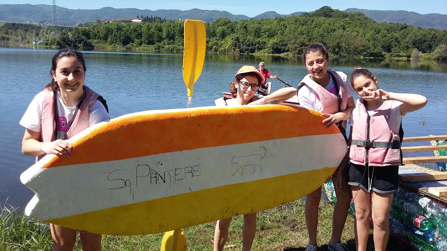 Invece il premio per la squadriglia più veloce è stato vinto dalla squadriglia Pantere che ha gareggiato con un SUP (Stand Up Paddle), ovvero una tavola da surf costruita con materiale riciclato , progettata molto bene dalla capo squadriglia Sara e dalle squadrigliere Giorgia , Francesca e Alice che hanno remato con le braccia per tutta la regata! Alla fine, anche se stremate, hanno ricevuto la sudata vittoria, all’ inizio negata poi riconosciuta dalla giuria . La tavola è stata costruita con polistirolo espanso e con la vetro resina ovvero resina unita a lana di vetro.