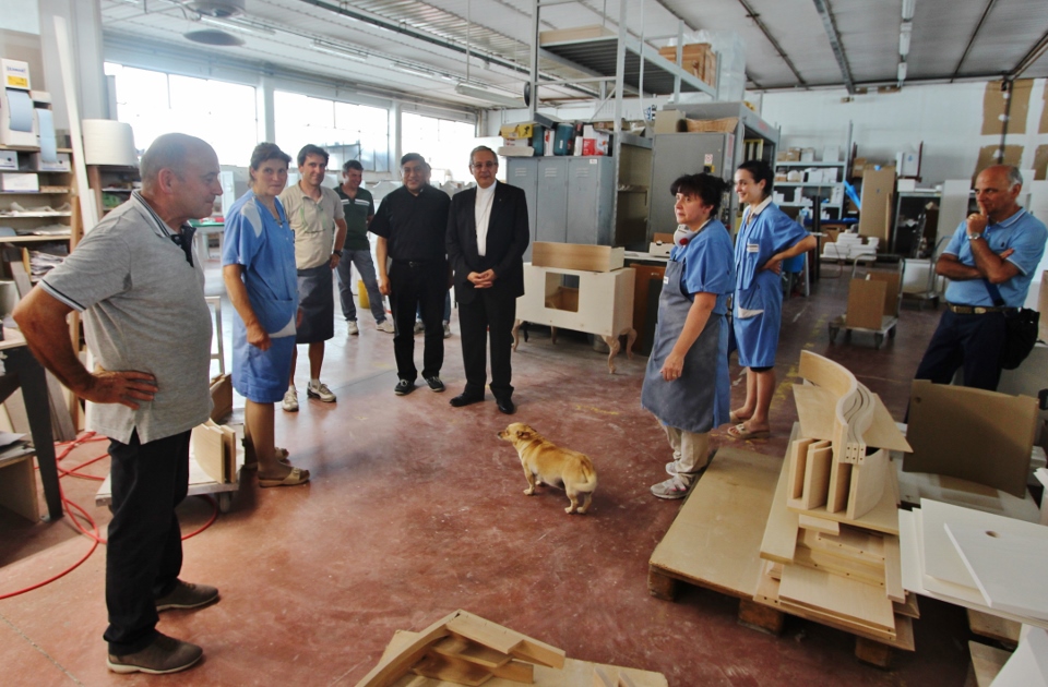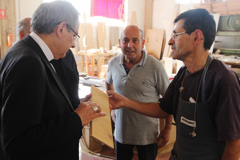 Mons Bresciani, accompagnato da don Luis Sandoval e da don Nicola Spinozzi ha visitato prima la MobilTesino, dove ha incontrato gli operai al lavoro e, in seguito, l’azienda Agricola di Cossignano “Poderi de Marte” dei due giovani Marino e Roberto Capannelli,esprimendo apprezzamento per il dinamismo degli imprenditori e il rapporto di collaborazione esistente tra aziende e dipendenti.