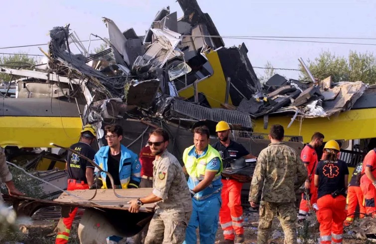 Un giorno fa, un secolo fa. La macchina dei soccorsi e quella della solidarietà hanno funzionato in modo egregio. Dal momento dello scontro sono costantemente al lavoro più di seicento persone.E centinaia di comuni cittadini si sono riversati nei centri trasfusionali dei nosocomi pugliesi per donare il loro sangue in favore dei feriti dell’incidente.Da Foggia a Bari, da Andria a Barletta le code d’attesa per la donazione sono durate ore. Una prova splendida della Puglia migliore. Un gesto incredibile che purtroppo però non serve a consolare quanti non rivedranno più i loro cari. Chi si ferma in un angolo a piangere accovacciato su se stesso, chi urla contro le mancanze della politica, chi chiede agli amministratori locali e non, impegnati nella solita spola che fa da cornice a tragedie del genere, una giustizia che i morti meritano, fanno pensare che non bastano i litri di sangue donati, il conforto dei religiosi, le bottigliette d’acqua che i volontari offrono. Il futuro di quelle ventitré persone si è spezzato la mattina del 12 Luglio 2016 su un treno regionale pugliese, in un terrificante botto in mezzo al niente. Enrico non vedrà mai più i suoi due nipotini, Pasquale, uno dei due macchinisti, non potrà più accompagnare all’altare sua figlia e Jolanda non potrà più sposare il suo Marco. Un giorno fa tutti si dicevano arrivederci. Un giorno che sembra un secolo. Sabato ci saranno i funerali. L’ultimo saluto a chi ha solo avuto la sfortuna di comprare il biglietto sbagliato per andare un giorno al mare, per partire per le vacanze o solo per abbracciare il suo amore.