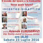 Di fronte alle persone in difficoltà e a situazioni faticose – penso anche ai giovani per i quali sposarsi o avere figli è un problema, perché non hanno un impiego sufficientemente stabile o la casa, – non serve fare prediche; occorre invece trasmettere speranza, confortare con la presenza, sostenere con l’aiuto concreto. E’ quello che come Chiesa locale stiamo cercando di fare nel nostro territorio con queste iniziative cercando anche di presentare delle istanze, progetti delle aziende e di giovani del territorio da sottoporre alle istituzioni Regionali e Nazionali”.