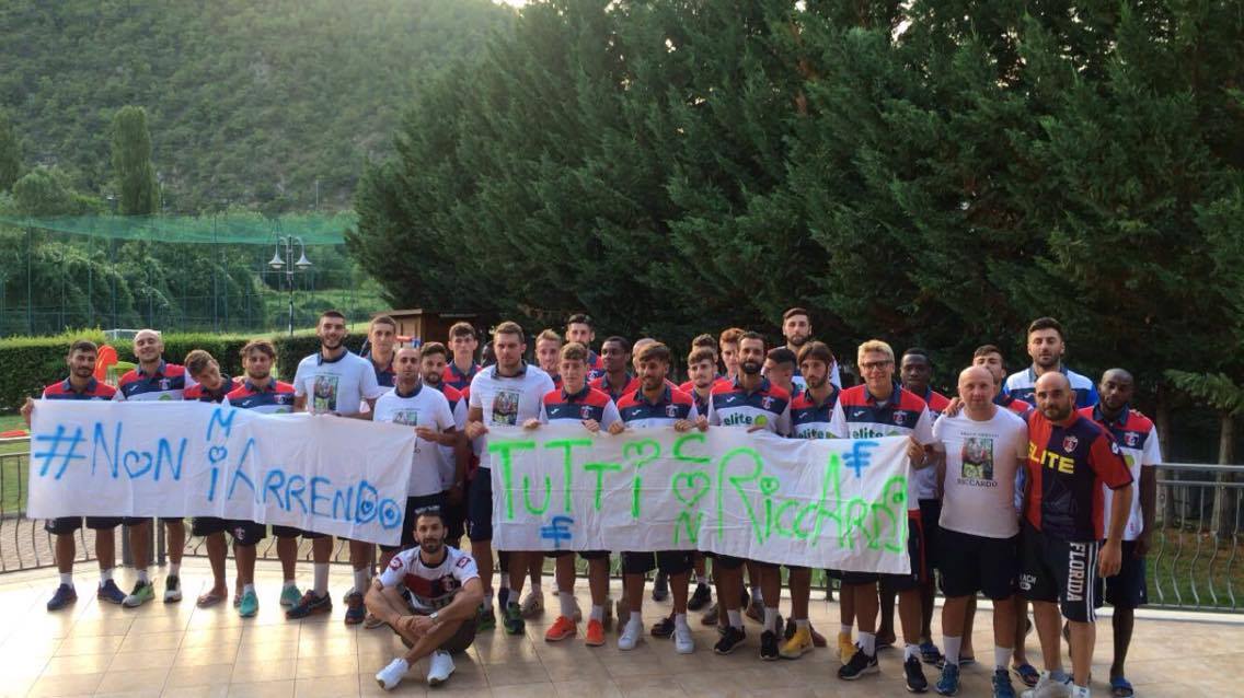RiccardoSAN BENEDETTO DEL TRONTO – Un saluto speciale quello ricevuto in serata dai rossoblù nel ritiro di Cascia. A far visita ai calciatori della Samb e a tutto lo staff tecnico e medico i volontari della Onlus grottammarese Insieme per Riccardo.