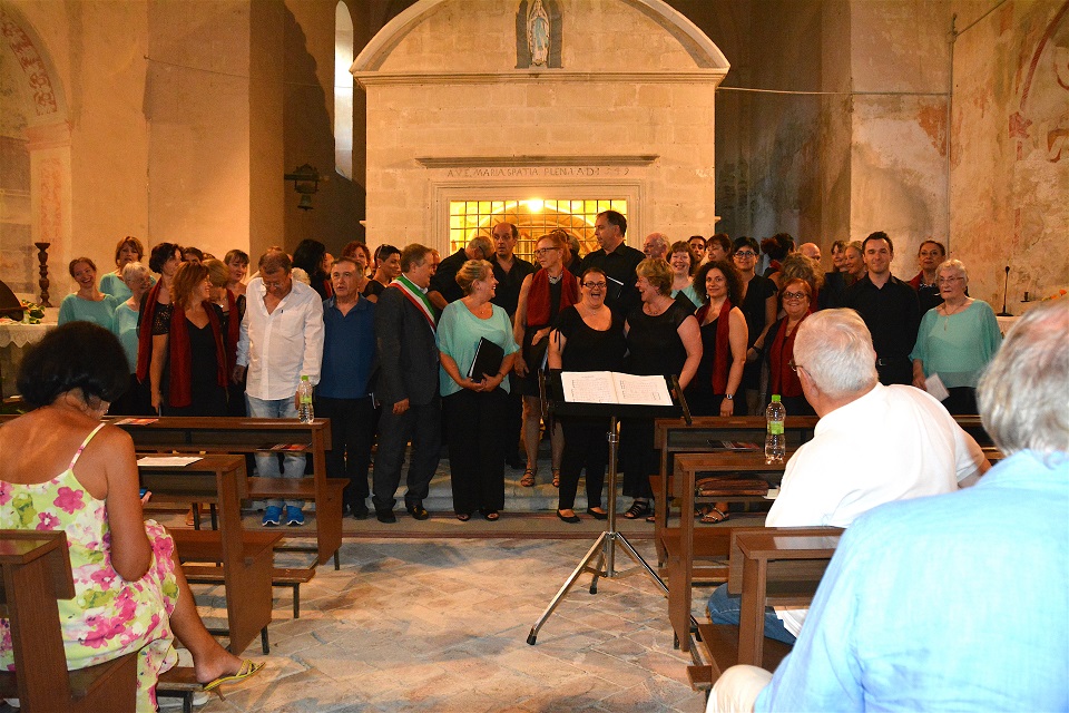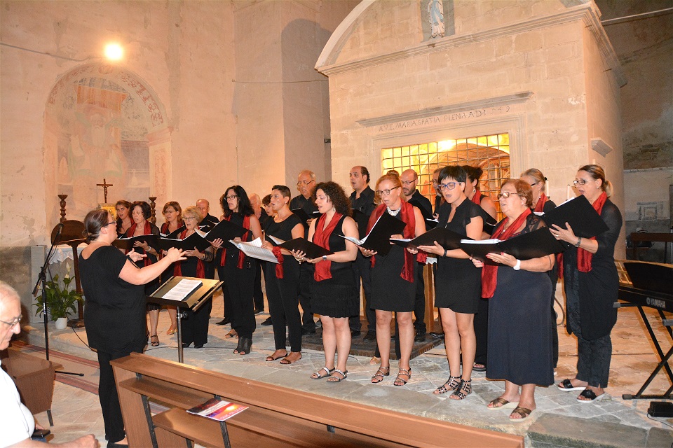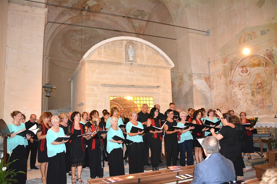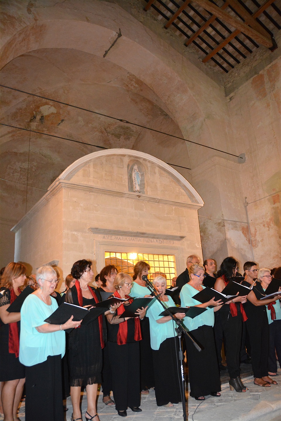 Terminata questa breve, ma doverosa presentazione del monumento, è stata quindi la volta delle Corali che, chiamate in ribalta, hanno dato prova di tutto il loro valore attirando la massima attenzione del pubblico! Alcuni pezzi sono stati eseguiti, con grande fascino e bravura da parte degli esecutori, insieme dagli oltre 50 componenti delle due corali: