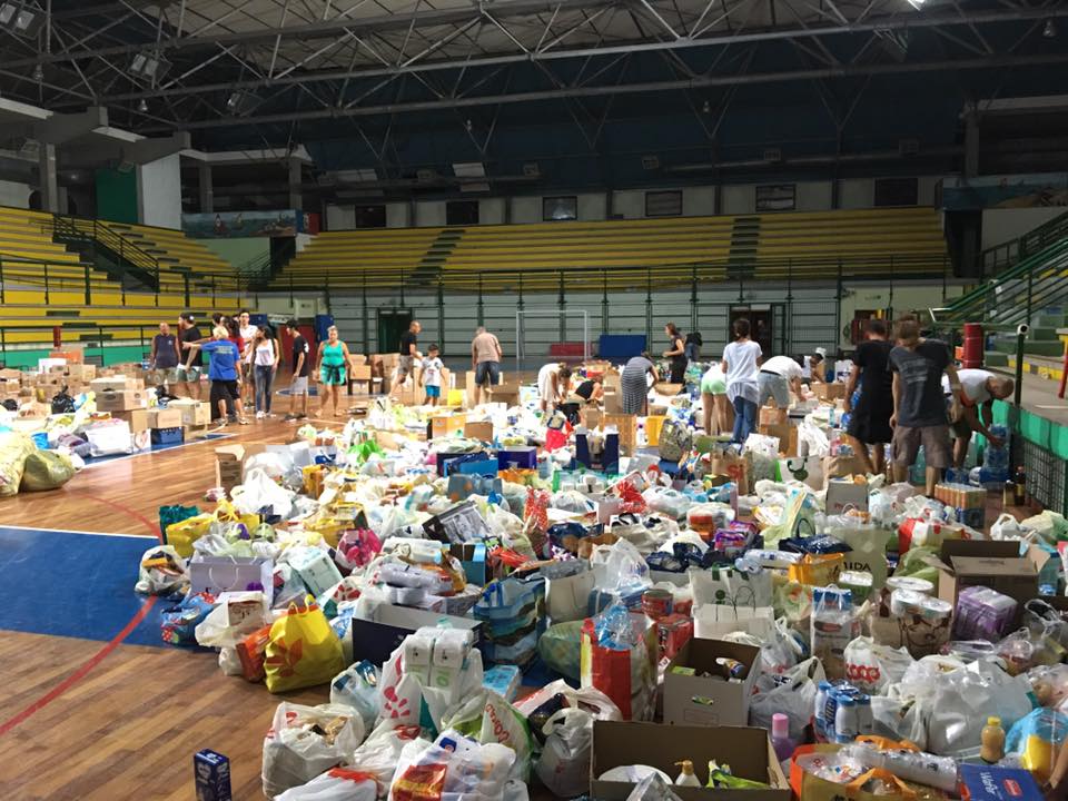 Il comune di San Benedetto del Tronto ha allestito un punto di raccolta, che ha visto impegnato oltre 100 persone, dove nella giornata di ieri sono stati portati beni alimentari non deperibili (scatolame, pasta, prodotti per l’infanzia), presso la sede del Gruppo Comunale di Protezione Civile di San Benedetto, lato sud del Palazzetto dello Sport in viale dello Sport.