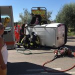 GROTTAMMARE – È stato scongiurato il peggio questa mattina, alle 10:30 circa, nei pressi del quartiere Ischia II, all’incrocio di via Lazio, adiacente alla parrocchia Gran Madre di Dio. Un furgone si è ribaltato dopo un brutto tamponamento con un’automobile. Tempestivi i soccorsi giunti nel luogo in pochi minuti. È stato necessario l’intervento di un elisoccorso che ha trasportato il conducente del furgone M.M. all’ospedale di Ancona. Per lo sfortunato si pensa ad una frattura del bacino, forse anche agli arti inferiori, ma nulla di confermato.