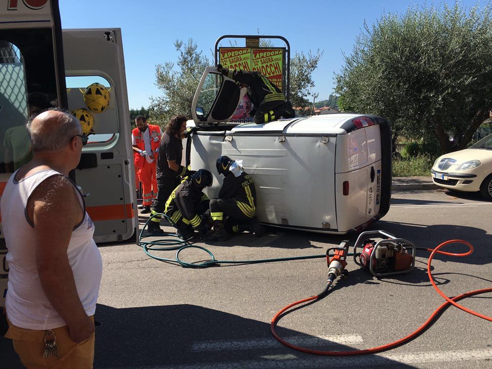 GROTTAMMARE – È stato scongiurato il peggio questa mattina, alle 10:30 circa, nei pressi del quartiere Ischia II, all’incrocio di via Lazio, adiacente alla parrocchia Gran Madre di Dio. Un furgone si è ribaltato dopo un brutto tamponamento con un’automobile. Tempestivi i soccorsi giunti nel luogo in pochi minuti. È stato necessario l’intervento di un elisoccorso che ha trasportato il conducente del furgone M.M. all’ospedale di Ancona. Per lo sfortunato si pensa ad una frattura del bacino, forse anche agli arti inferiori, ma nulla di confermato.