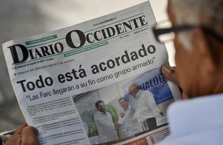 Alla fine è arrivata all’Avana la sospirata firma sull’accordo di pace tra Governo colombiano e Farc. E’ arrivata mercoledì 24 agosto senza la solennità che forse era prevista, senza la presenza di capi di Stato e i vertici dell’Onu. Senza annunci e fanfare. E’ arrivata come cade dall’albero un frutto maturo. Ormai la firma, dopo 50 anni di guerra e 3 di trattative, non poteva non arrivare. Sembrava quasi un dettaglio tra le due date davvero decisive: quella della firma del definitivo cessate il fuoco, avvenuta lo scorso 22 giugno, e quella del plebiscito (da settimane non si parla d’altro nel mondo politico colombiano): il 2 ottobre sarà il popolo ad esprimere il suo giudizio sull’accordo di pace.