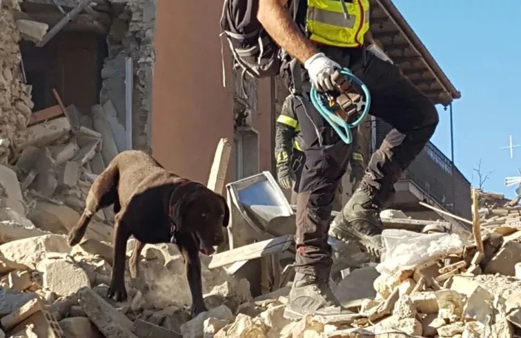 Si muove agile tra le macerie, sotto lo sguardo vigile del suo conduttore. Anche dal suo fiuto dipende la vita di chi non ha avuto il tempo o la forza di correre fuori casa prima che tutto crollasse. Jack è un labrador, un cane da superficie, valanghe e macerie. Annusa tutto, poi si volta al suo padrone, in un modo che solo lui sa comprendere, è il segnale. Potrebbe esserci qualcuno sepolto sotto le macerie. Jack torna dal padrone, si prende la sua carezza e attende. Arrivano i medici e i tecnici specializzati nel recupero dei dispersi. Si sentono lamenti, espressioni di dolore, ma sono segni di vita. Le macerie vengono rimosse un po’ alla volta, per evitare altri crolli. Entra aria e luce nel cratere. Stavolta è andata bene. Una vita è salva.
