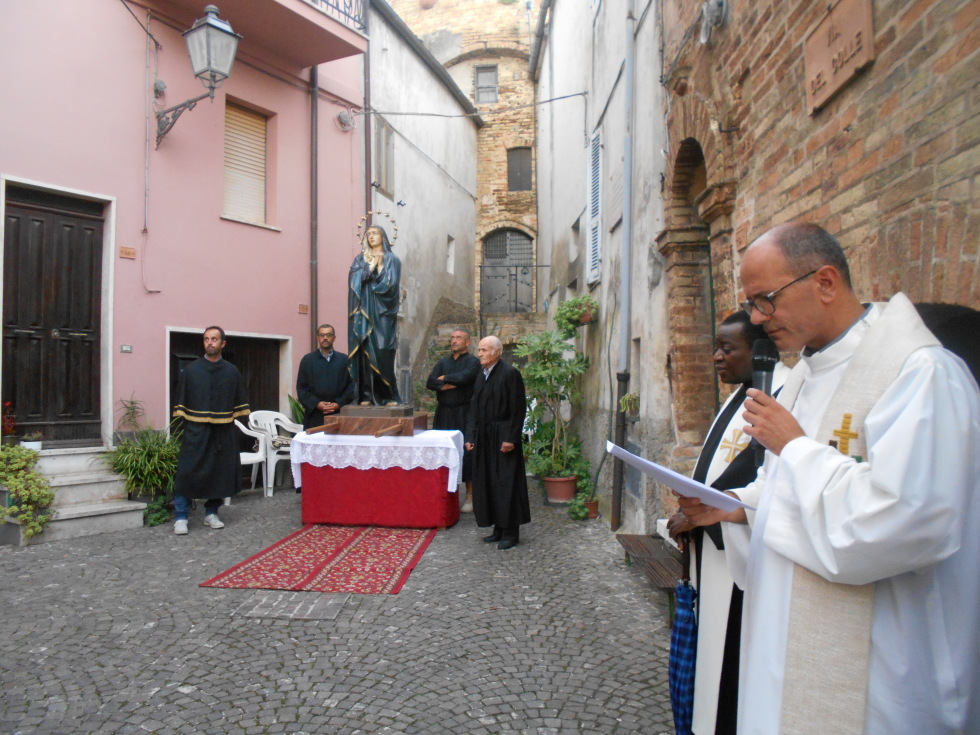 ACQUAVIVA PICENA – Domenica 18 settembre ad Acquaviva Picena si è festeggiata la Madonna dell’Addolorata. Verso le 18:00 nonostante il tempo incerto, si è comunque snodata la solenne processione per le vie del paese. Il percorso purtroppo si è dovuto interrompere perché è cominciato a piovere, ma la preghiera è proseguita all’interno della chiesa che si è gremita di fedeli. Nella chiesa parrocchiale si è recitato il santo Rosario, letto brani dalle Encicliche di Papa Francesco e cantato canti mariani. Dopo la solenne benedizione è stata celebrata la Santa Messa.
