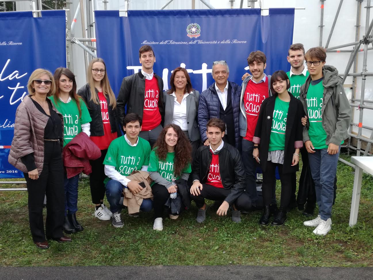 SAN BENEDETTO DEL TRONTO – Giornata da ricordare per i dieci ragazzi del Liceo scientifico Rosetti di San Benedetto del Tronto che nella mattinata del 30 settembre hanno partecipato a Sondrio a “Tutti a scuola”, la cerimonia di inaugurazione ufficiale dell’anno scolastico svoltasi alla presenza del Presidente della Repubblica Sergio Mattarella, della Ministra dell’istruzione Stefania Giannini e di numerose personalità del mondo della cultura, dello sport e dello spettacolo. Claudio Benigni, Monica Bruni, Megi Korriku, Kristian Lika, Andrea Mignini, Alessandro Pignati, Ludovica Polidori, Gian Marco Spinozzi, Ludovica Straccia e Damiano Stramaccioni hanno rappresentato l’istituto superiore che è stato invitato alla manifestazione direttamente dal Miur, il quale ne ha così sottolineato l’impegno anche nella cura delle eccellenze. Tutti i ragazzi partecipanti, infatti, sono emersi a livello anche nazionale per gli ottimi risultati in gare, concorsi, progetti ed attività di rilievo in differenti settori. Accompagnati dalla Dirigente Scolastica Stefania Marini e dai professori Nuccio Mozzicato ed Adelia Micozzi, i ragazzi, prima di entrare al Campus scolastico che ha ospitato l’evento, sono stati intervistati per Radio Rai 1; subito dopo il cordiale incontro con la Ministra Giannini che si è intrattenuta con la Dirigente Scolastica informandosi sulla situazione degli alunni di Accumoli ospiti del Rosetti dopo il terremoto; si tratta di cinque ragazzi, inseriti in varie classi. Durante la manifestazione, trasmessa in diretta su Rai 1, il palco ha ospitato gli interventi della Ministra Giannini, degli olimpionici Fabio Basile (oro per il judo a Rio), Daniele Garozzo (oro nel fioretto a Rio), Arianna Fontana (short Track medagliata alle olimpiadi invernali di Soci) e degli atleti paraolimpici tra cui Federico Morlacchi (un oro e due argenti a Rio).