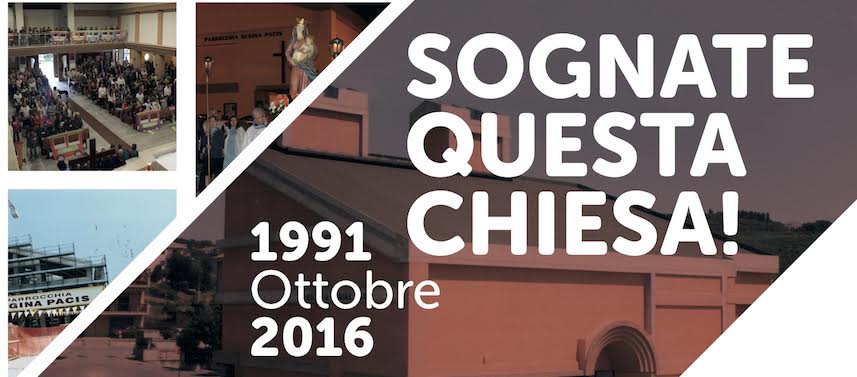 Un ricordo del passato tutto teso a pensare il futuro, una storia aperta che chiede a noi di ritrovare lo stesso entusiasmo, la stessa tenacia, la stessa essenzialità che hanno spinto i nostri padri alla crescita di questa comunità cristiana. “L’elogio degli uomini illustri” (Sir 44,1) che stiamo vivendo in questa settimana di festa è per ricevere da loro il testimone, trovare e riscoprire che oggi, noi bambini di ieri diventati giovani, giovani di ieri diventati padri e padri di ieri diventati nonni, siamo chiamati a raccogliere la sfida di continuare a far crescere la parrocchia della Regina Pacis. Guardare il futuro come il tempo del Regno di Dio che siamo chiamati a far fermentare, raccogliere le domande che salgono dalle nostre case speriamo diventino conseguenze di questi giorni. Le nostre famiglie spesso sono segnate dalla paura e da rapporti difficili e tesi, dalla solitudine delle giovani coppie e dalla grande emergenza educativa che spesso spinge genitori ed educatori ad abdicare al difficile ma stupendo compito dell’educazione e del racconto della fede, queste domande insieme alla nuove e spesso nascoste povertà, bussano alle porte della nostra chiesa, chiedono a questa parrocchia risposte, concretezza del vangelo insieme all’ accettazione di essere lo specchio dove questi nuovi “poveri” possano trovare il volto di Gesù che ha voluto questi anni insieme.