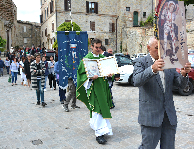 Dopo la messa è seguita una processione con l’effigie del Santo Arcangelo Michele e del Gonfalone Comunale: il tutto è stato impreziosito, sia durante la cerimonia in chiesa che in processione, dalla presenza della Reliquia del Santo Padre Pio da Pietrelcina che era a Montelparo, come noto, da qualche giorno!