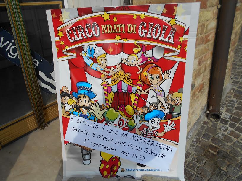 ACQUAVIVA PICENA – Sabato 8 ottobre alle 15:30 in piazza san Niccolò ad Acquaviva Picena i catechisti, gli educatori e gli animatori insieme al parroco don Alfredo hanno accolto tutti i bambini delle elementari e i ragazzi delle medie per dare il via al primo spettacolo del “Circo Acquaviva ACR”. I bambini e i ragazzi non sono stati semplici spettatori, ma sono invece stati invitati ad essere essi stessi protagonisti. Un primo momento è stato dedicato alle iscrizioni nei vari gruppi di catechismo, tutto mentre si ascoltava l’inno ACR “Circondati di gioia”. Durante l’ascolto, alcune animatrici vestite da clown, hanno invitato tutti a ballare con loro.