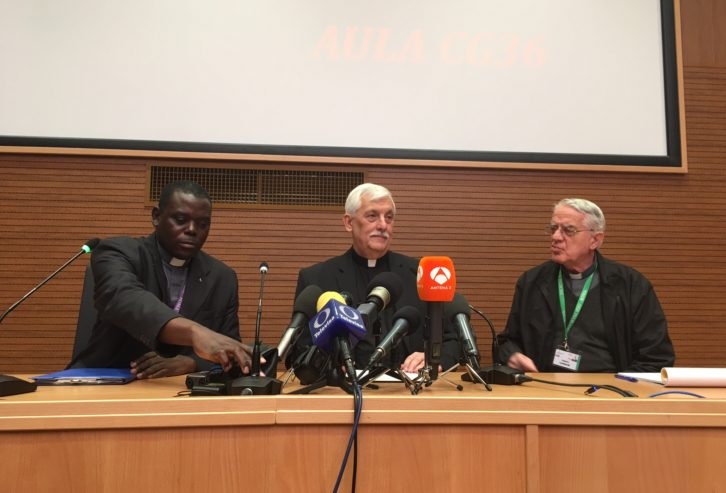 Il nuovo Superiore generale dei gesuiti, il venezuelano padre Arturo Sosa Abascal, risponde di getto, sorridendo sotto quei baffi che tanto hanno attirato l’attenzione pubblica, ai giornalisti che lo incontrano per la prima volta nell’Aula della Curia generalizia che, il 14 ottobre, ha visto la sua elezione durante la 36esima Congregazione Generale. Accanto a lui, padre Federico Lombardi, assistente ad providentiam e consigliere generale, e il portavoce padre Patrick Mulemi.