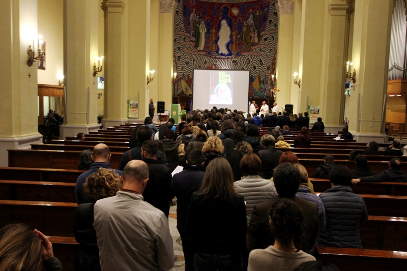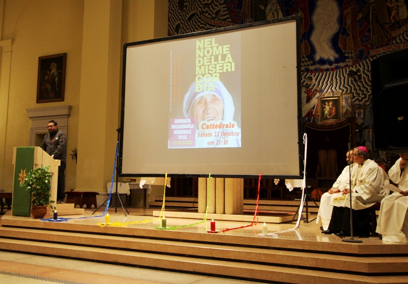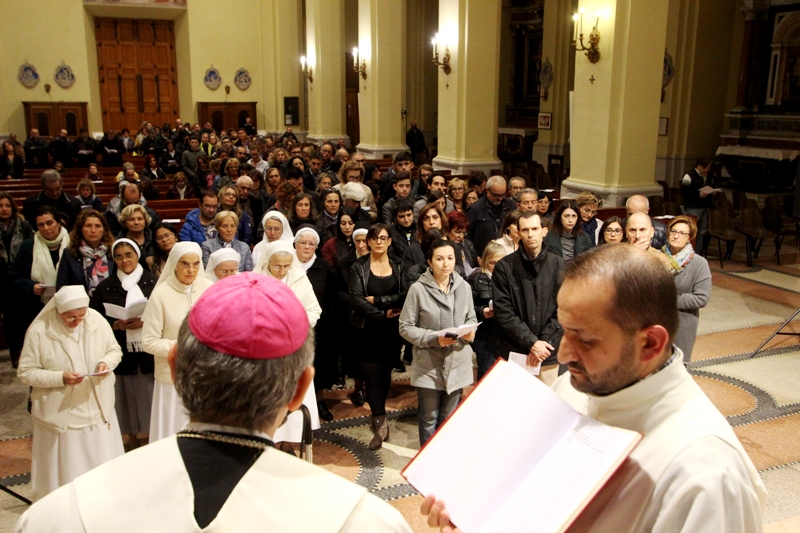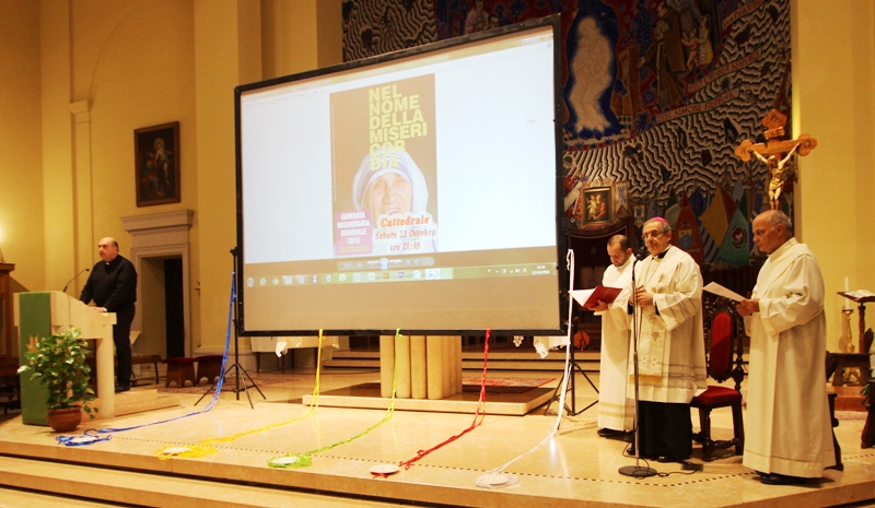 DIOCESI – Sabato 22 ottobre presso la Basilica Cattedrale di Santa Maria della Marina a S. Benedetto del Tronto, si è svolta la celebrazione congiunta della Giornata Mondiale Missionaria e del Mandato Diocesano ai catechisti, presieduta dal vescovo S.E. mons. Carlo Bresciani. Don Nicola Spinozzi e don Dino Pirri, direttori rispettivamente del Centro Missionario Diocesano e dell’Ufficio Catechistico Diocesano, organizzatori dell’evento, hanno curato la liturgia e l’animazione insieme ai volontari del C.M.D. e dell’Ufficio Catechistico; il coro della parrocchia di S. Filippo Neri si è magistralmente occupato della parte musicale; la Dave Pro s.r.l. ha fornito l’attrezzatura per le proiezioni e la consulenza tecnica. Infatti brevi video – come la presentazione della Giornata Mondiale Missionaria da parte del missionario e giornalista don Giulio Albanese, e alcuni interventi di papa Francesco sui più urgenti e scottanti temi di attualità missionaria – si sono alternati a testimonianze dirette, come quella molto toccante dei coniugi Tiziana e Mario, entrambi catechisti; e a momenti di preghiera e di riflessione, sottolineati dai canoni e dai canti del coro.