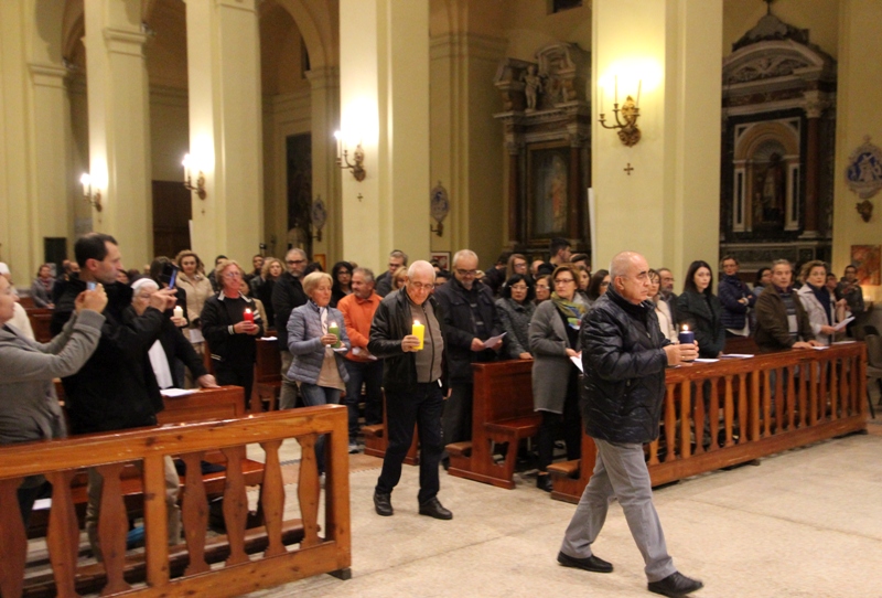 DIOCESI – Sabato 22 ottobre presso la Basilica Cattedrale di Santa Maria della Marina a S. Benedetto del Tronto, si è svolta la celebrazione congiunta della Giornata Mondiale Missionaria e del Mandato Diocesano ai catechisti, presieduta dal vescovo S.E. mons. Carlo Bresciani. Don Nicola Spinozzi e don Dino Pirri, direttori rispettivamente del Centro Missionario Diocesano e dell’Ufficio Catechistico Diocesano, organizzatori dell’evento, hanno curato la liturgia e l’animazione insieme ai volontari del C.M.D. e dell’Ufficio Catechistico; il coro della parrocchia di S. Filippo Neri si è magistralmente occupato della parte musicale; la Dave Pro s.r.l. ha fornito l’attrezzatura per le proiezioni e la consulenza tecnica. Infatti brevi video – come la presentazione della Giornata Mondiale Missionaria da parte del missionario e giornalista don Giulio Albanese, e alcuni interventi di papa Francesco sui più urgenti e scottanti temi di attualità missionaria – si sono alternati a testimonianze dirette, come quella molto toccante dei coniugi Tiziana e Mario, entrambi catechisti; e a momenti di preghiera e di riflessione, sottolineati dai canoni e dai canti del coro.
