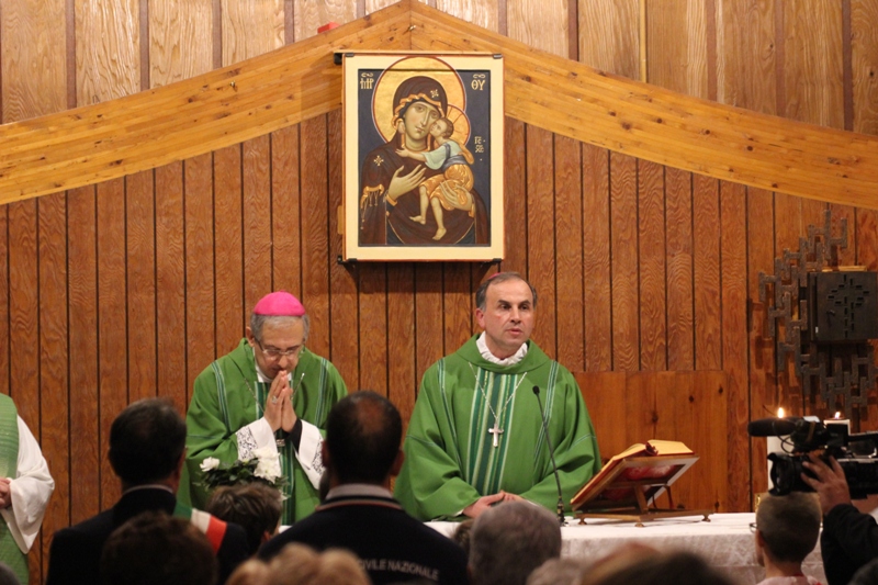 Per ricordare tutte le vittime del violento terremoto ieri pomeriggio è stata celebrata, alle ore 18,30 presso la cappellina dell’Immacolata sul lungomare di San Benedetto del Tronto, una S.Messa concelebrata dal Vescovo di Rieti mons. Pompili e dal nostro vescovo mons. Bresciani, alla presenza di tante persone dei luoghi colpiti dal sisma, dei volontari della caritas che effettuano servizio di volontariato e di tanti sambenedettesi. Alla S.Messa hanno partecipato anche il Commissario straordinario nominato dal Governo Vasco Errani, il Presidente della Regione Lazio Zingaretti ed i sindaci di San Benedetto del Tronto e di Accumoli. Il nostro Vescovo all’inizio della S.Messa ha salutato il confratello vescovo Pompili ricordando che la chiesetta dell’Immacolata è diventata la nuova parrocchia per i fratelli della diocesi di Rieti ospitati nella nostra città.