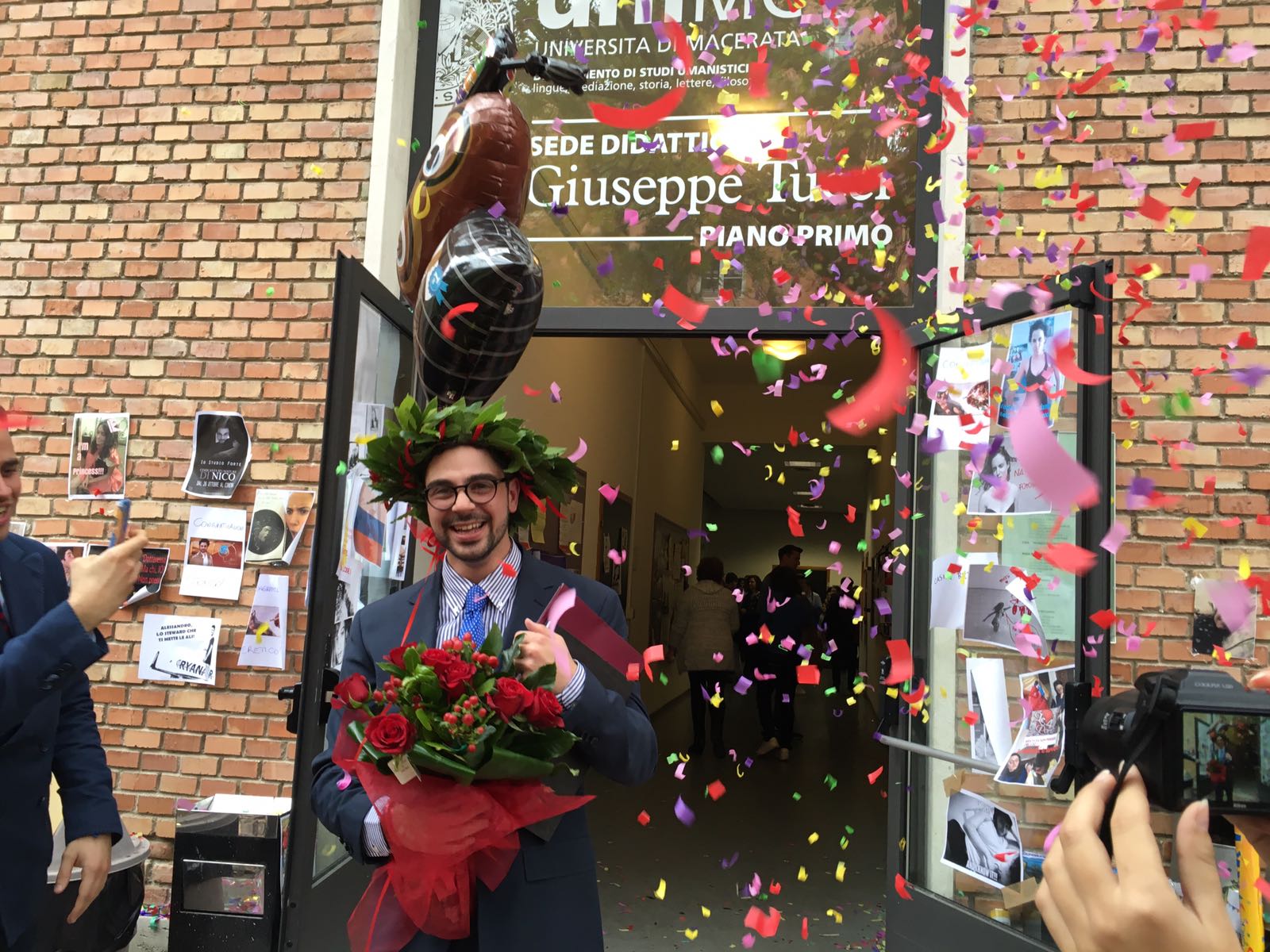 DIOCESI – Grande festa a Macerata per il Dott. Edoardo Nico, oggi mercoledì 26 ottobre, ha raggiunto l’importante traguardo della laurea magistrale in Ricerca Storica e Risorse della Memoria presso il Dipartimento di Studi Umanistici, dell’Università degli Studi di Macerata. L’ormai dott. Nico ha brillantemente discusso una tesi di laurea in Storia delle Arti del Novecento, dal titolo “Ai limiti del futurismo. Una riflessione su arte e tecnica.” relatore il Prof. Roberto Cresti.