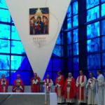 Quindi la celebrazione è proseguita nella chiesa moderna, con una messa solenne presieduta dal segretario generale della Conferenza Episcopale Italiana Mons. Nunzio Galantino e concelebrata da tutti i vescovi presenti, al termine della quale è stato concesso il Mandato Missionario a più di 30 fra sacerdoti, religiosi e religiose, laici e laiche, fidei donum e suore che si accingono a partire per le più diverse terre di missione nel mondo. Questi ultimi, visibilmente emozionati e commossi, hanno poi fatto da battistrada alla breve processione finale che si è conclusa sul piazzale esterno. Tra i missionari in partenza vi era anche il fidei donum maceratese Alberico Capitani che presterà la sua opera di apostolato in Argentina.