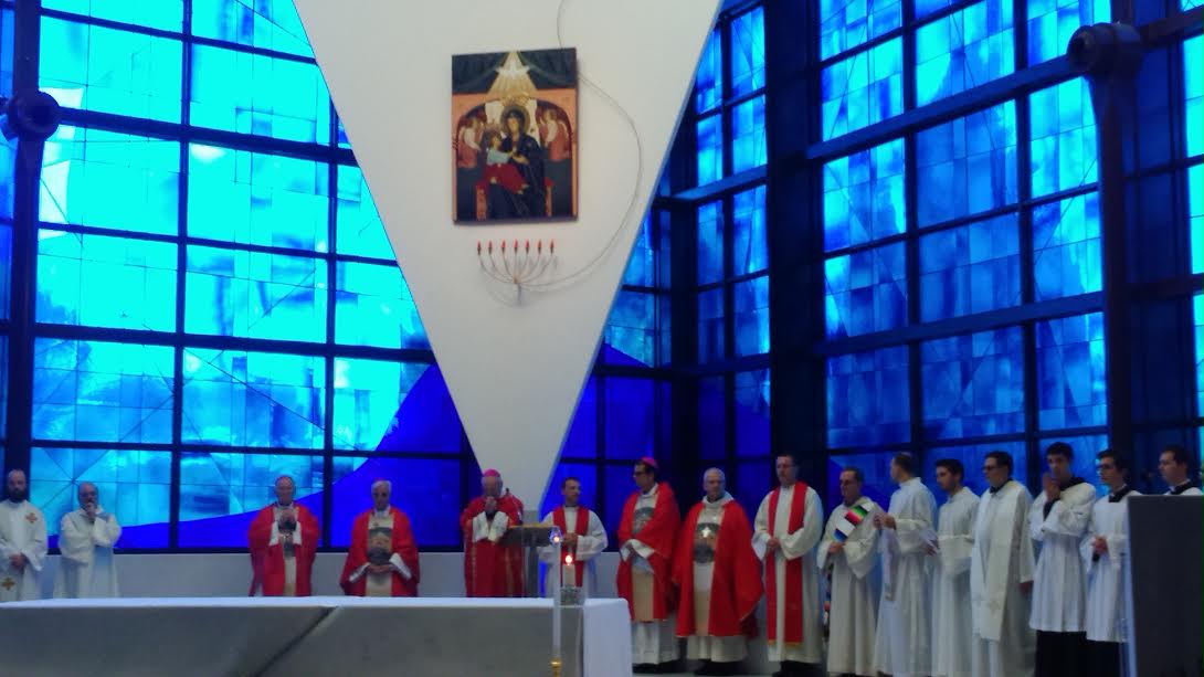 Quindi la celebrazione è proseguita nella chiesa moderna, con una messa solenne presieduta dal segretario generale della Conferenza Episcopale Italiana Mons. Nunzio Galantino e concelebrata da tutti i vescovi presenti, al termine della quale è stato concesso il Mandato Missionario a più di 30 fra sacerdoti, religiosi e religiose, laici e laiche, fidei donum e suore che si accingono a partire per le più diverse terre di missione nel mondo. Questi ultimi, visibilmente emozionati e commossi, hanno poi fatto da battistrada alla breve processione finale che si è conclusa sul piazzale esterno. Tra i missionari in partenza vi era anche il fidei donum maceratese Alberico Capitani che presterà la sua opera di apostolato in Argentina.