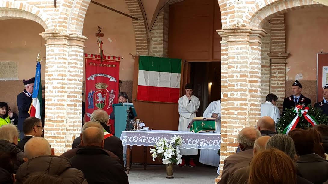 RIPATRANSONE – Domenica 6 Novembre la cittadinanza di Ripatransone si è riunita per rendere omaggio ai suoi caduti di tutte le guerre. A causa dei recenti eventi sismici, che hanno ferito profondamente il nostro territorio, la Celebrazione Eucaristica delle ore 11,00, non si è svolta come di consueto in Duomo, chiuso in via precauzionale per verifiche tecniche, ma in una tensostruttura nel piazzale antistante il civico cimitero.