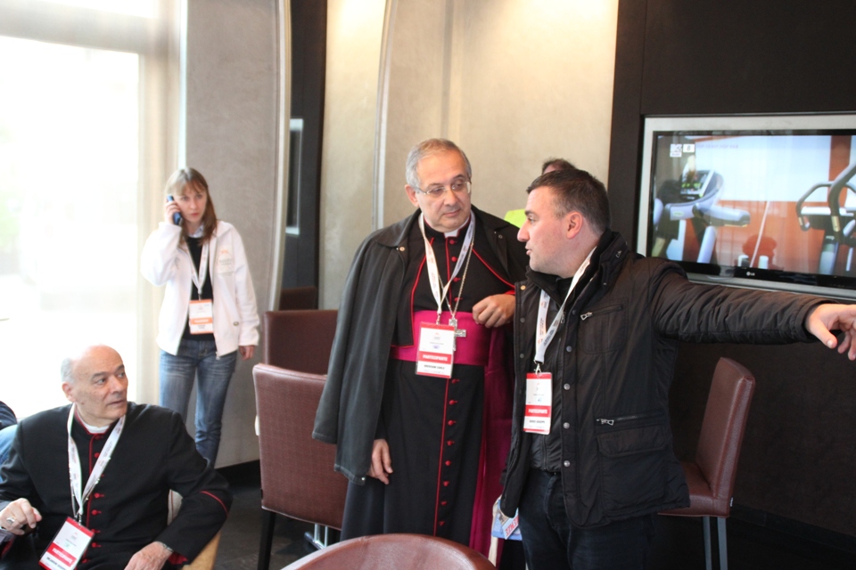 Il nostro Vescovo, sempre puntuale, alle 14.30 era già sul pullman pronto per partire in direzione “Fortezza dal Basso“, il luogo designato per i 4 giorni di incontri e aveva messo in crisi la giovane volontaria che stava aspettando la delegazione, in ritardo, proveniente da Macerata, arrivata fortunatamente pochi minuti dopo.