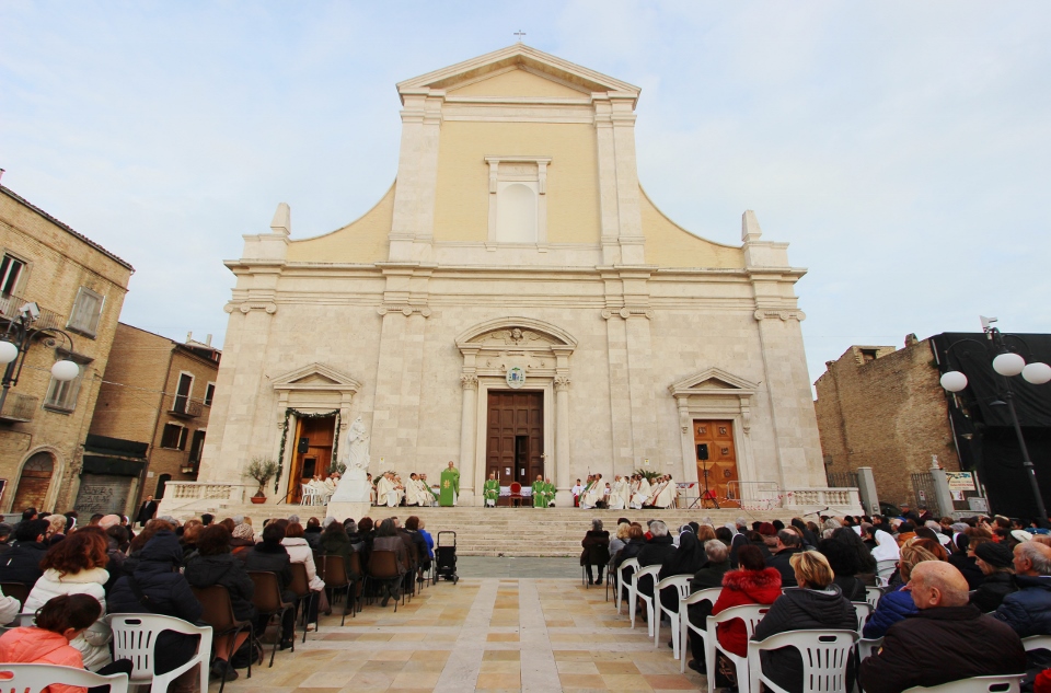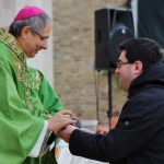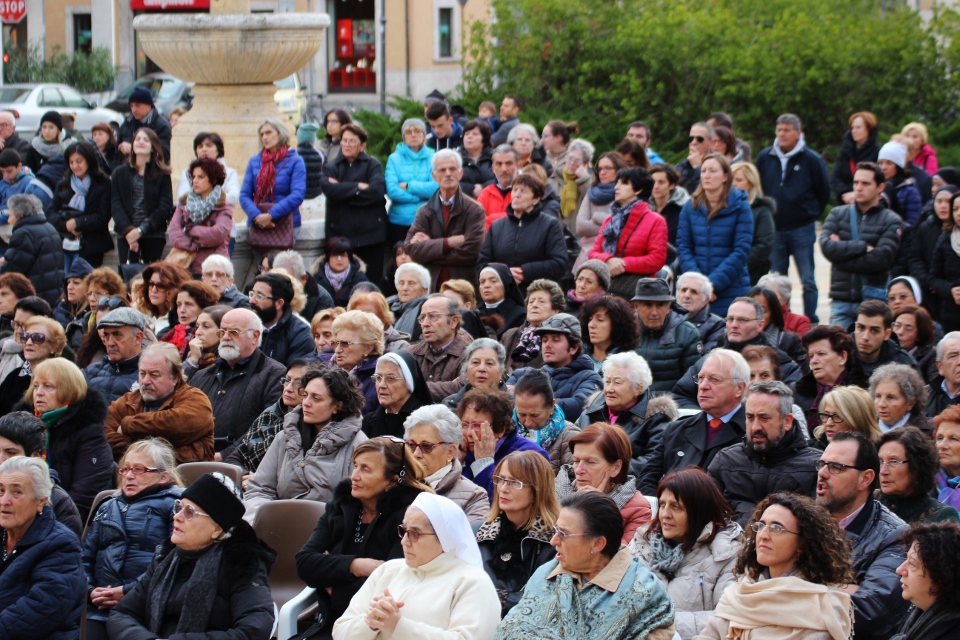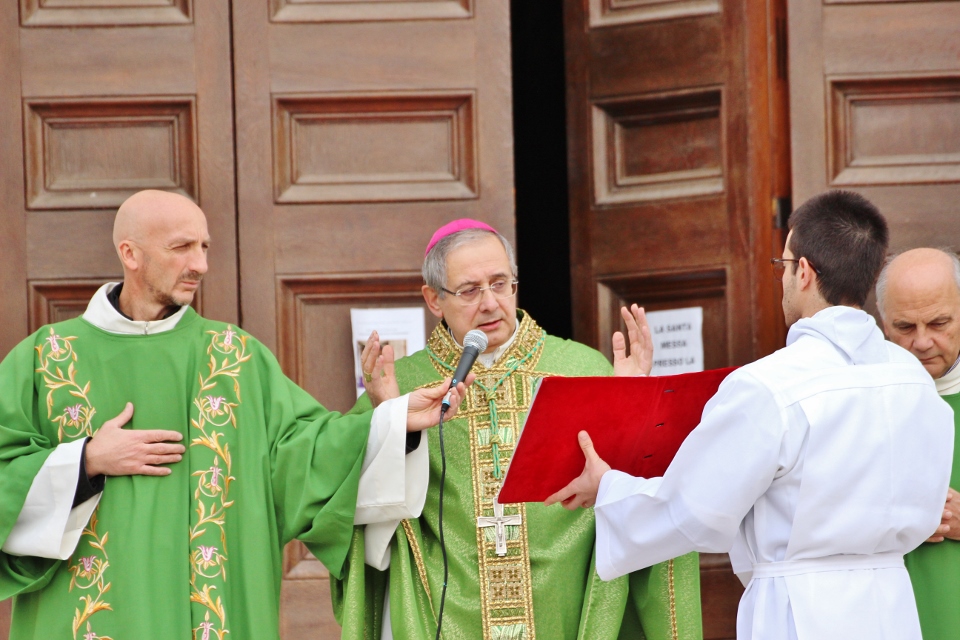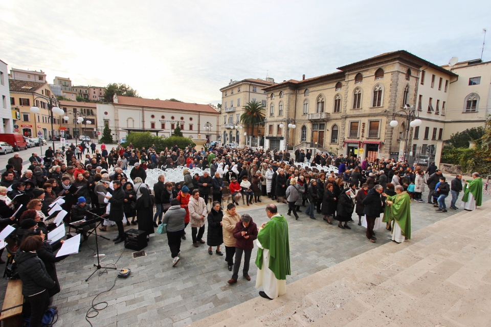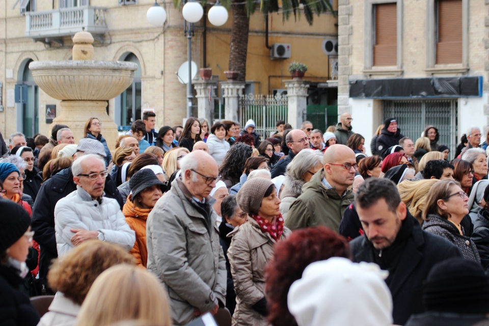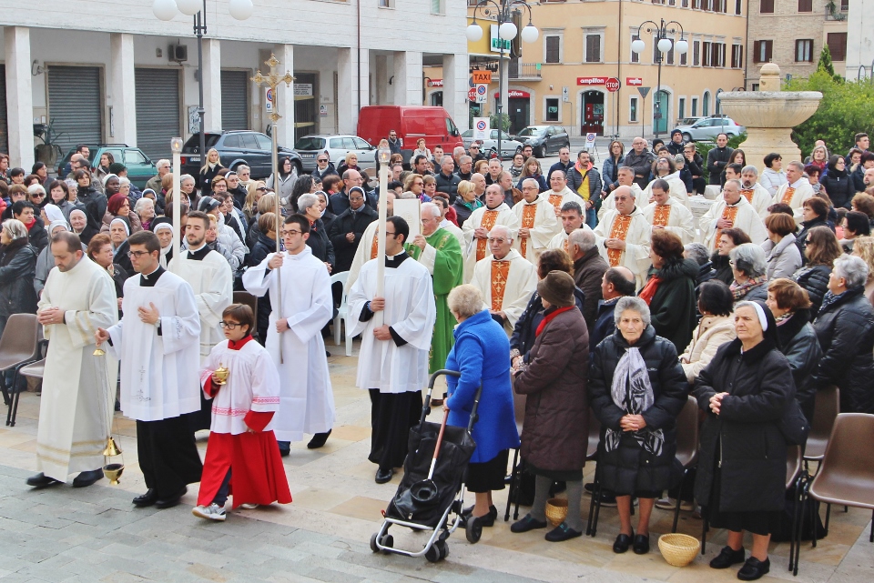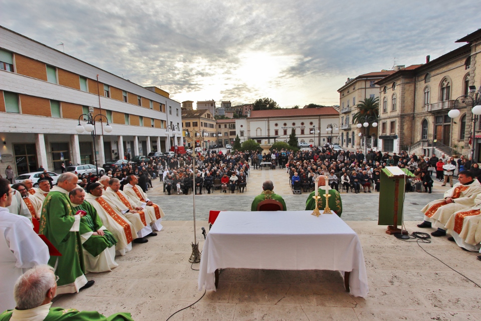 L’Eucaristia è stata celebrata a San Benedetto del Tronto presso Piazza Nardone in quanto la Cattedrale è chiusa a motivo del recente sisma.