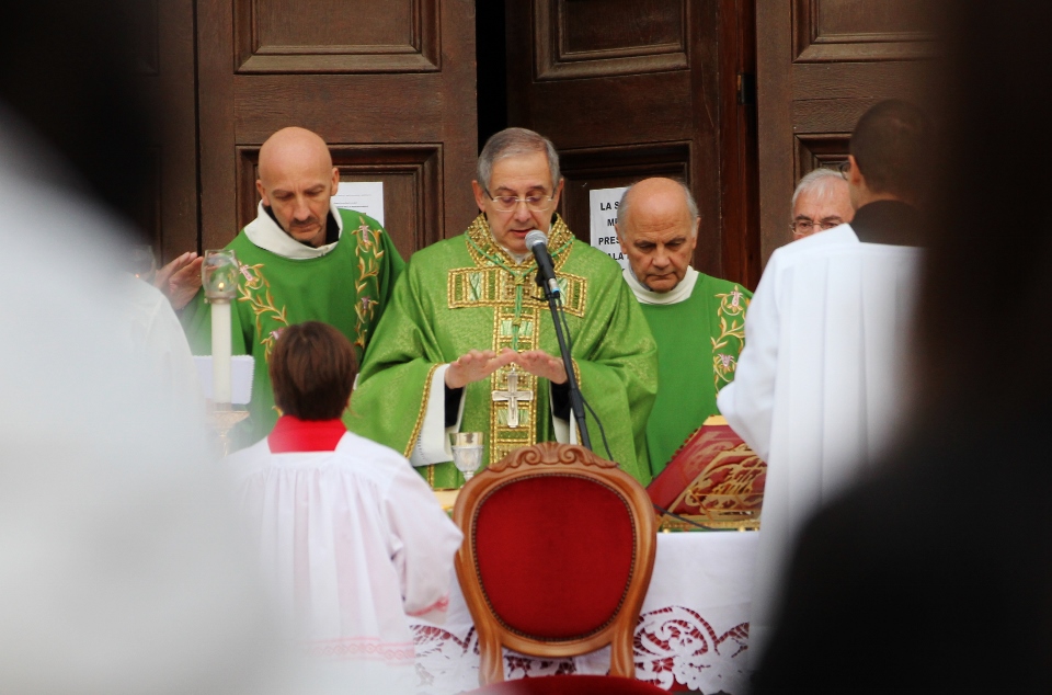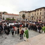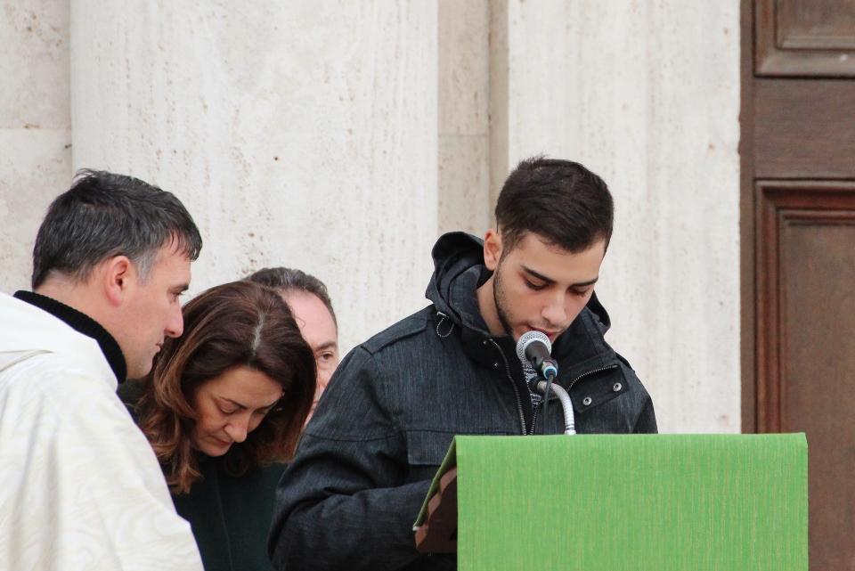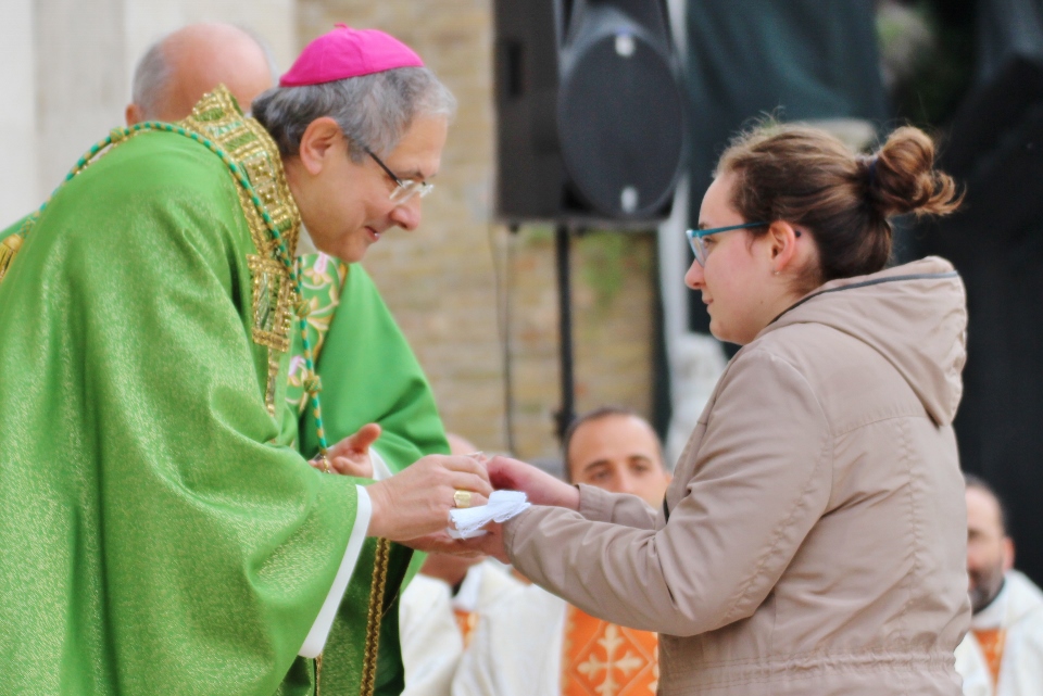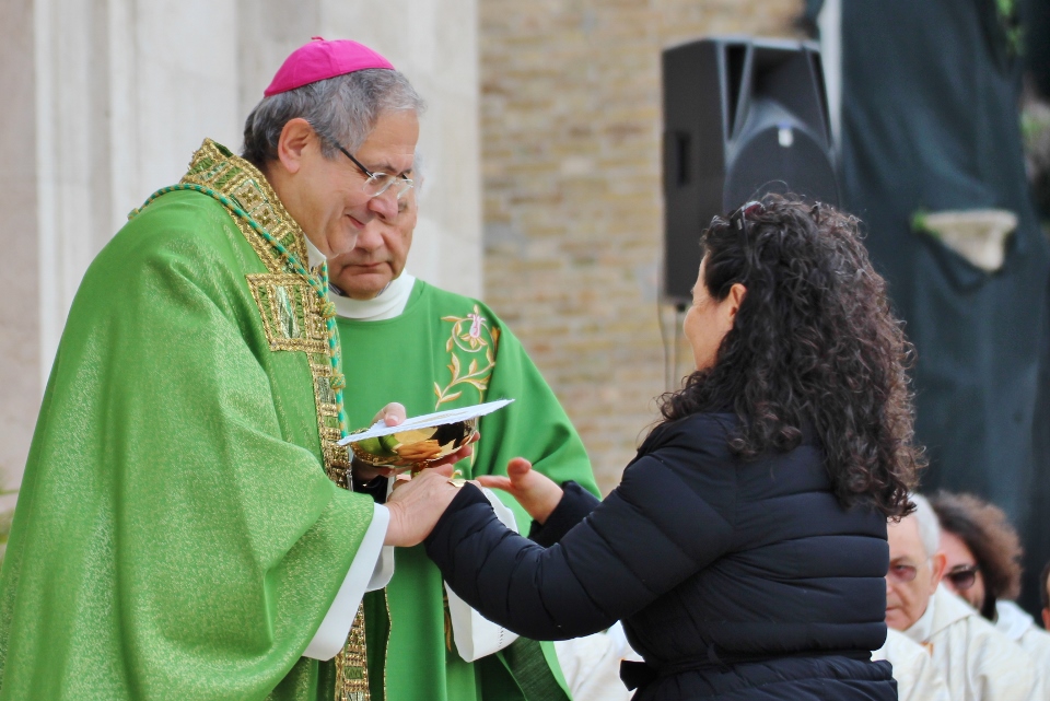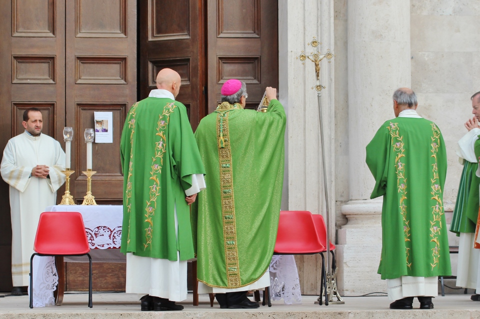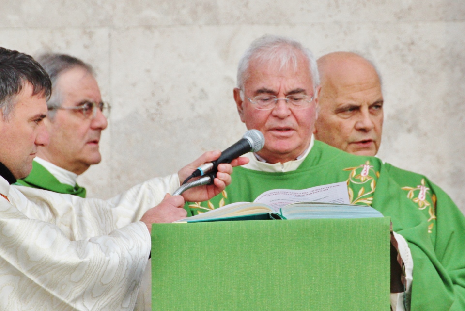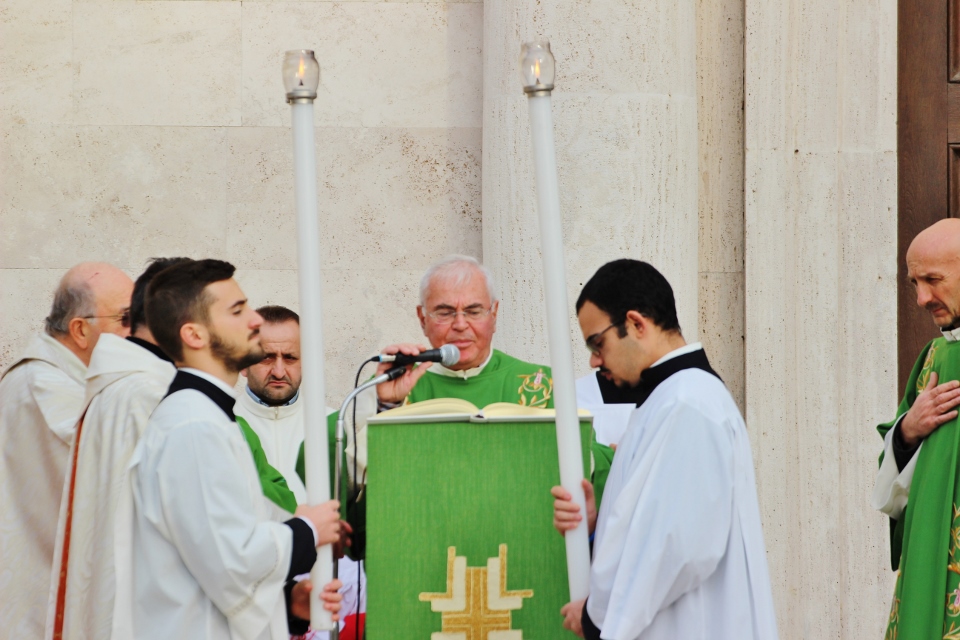 L’Eucaristia è stata celebrata a San Benedetto del Tronto presso Piazza Nardone in quanto la Cattedrale è chiusa a motivo del recente sisma.