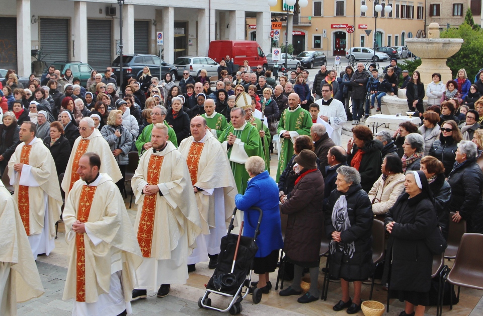 Il Vescovo Carlo Bresciani durante l’omelia ha affermato: “Siamo giunti al termine di questo anno di grazia che papa Francesco ha voluto per tutta la Chiesa, concedendo per la prima volta nella storia una porta santa per ogni cattedrale della Chiesa nel mondo. Anche noi abbiamo aperto una porta santa, attraverso cui siamo passati chiedendo la misericordia di Dio per noi e impegnandoci a diventare sempre più misericordiosi come Lui lo è nei nostri confronti. È stato un anno di vera grazia per la nostra Chiesa diocesana, segnato oltre che dall’anno giubilare, dalla celebrazione del 30° anniversario della costituzione come ‘nuova’ diocesi sulle antiche e mai spente radici di Montalto e Ripatransone. Un anno ricco di pellegrinaggi a questa chiesa cattedrale insieme a un grande pellegrinaggio diocesano a Roma sulle tombe dei primi apostoli, Pietro e Paolo, per confermare la nostra comunione con gli apostoli e con il loro successore, papa Francesco.