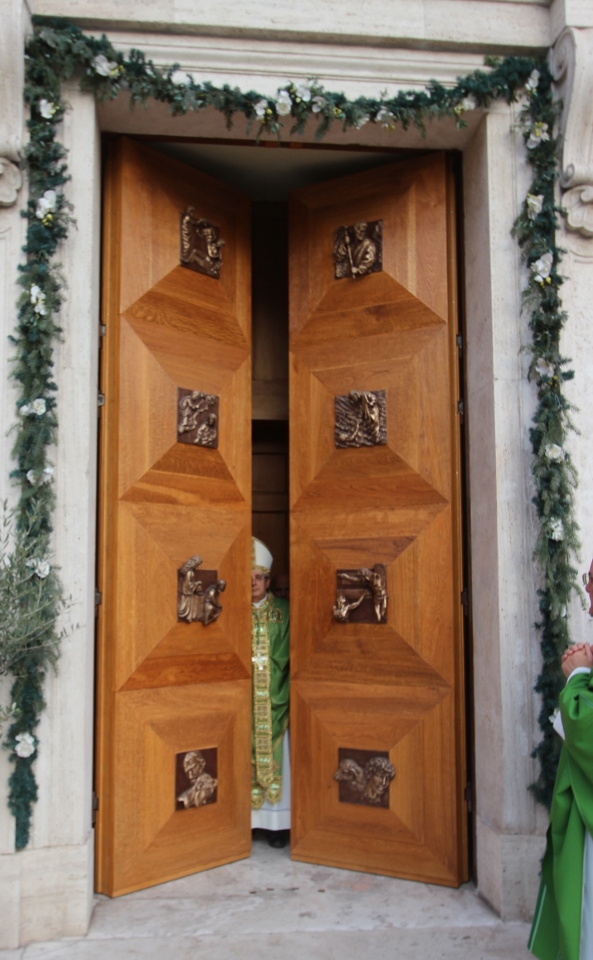 È lecito chiederci: che cosa ci resta di questo anno vissuto così intensamente? Significativamente e simbolicamente chiuderemo la porta della misericordia, ma apriremo, anzi spalancheremo, la porta principale della nostra cattedrale, non tanto per aiutare il deflusso dei fedeli, ma per indicare che da questa chiesa, dopo aver incontrato e celebrato la misericordia di Dio per ciascuno di noi, usciremo per portare nel mondo la misericordia, come segni noi stessi della misericordia con la quale Dio guarda a ciascuno dei suoi figli.